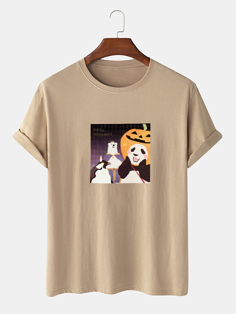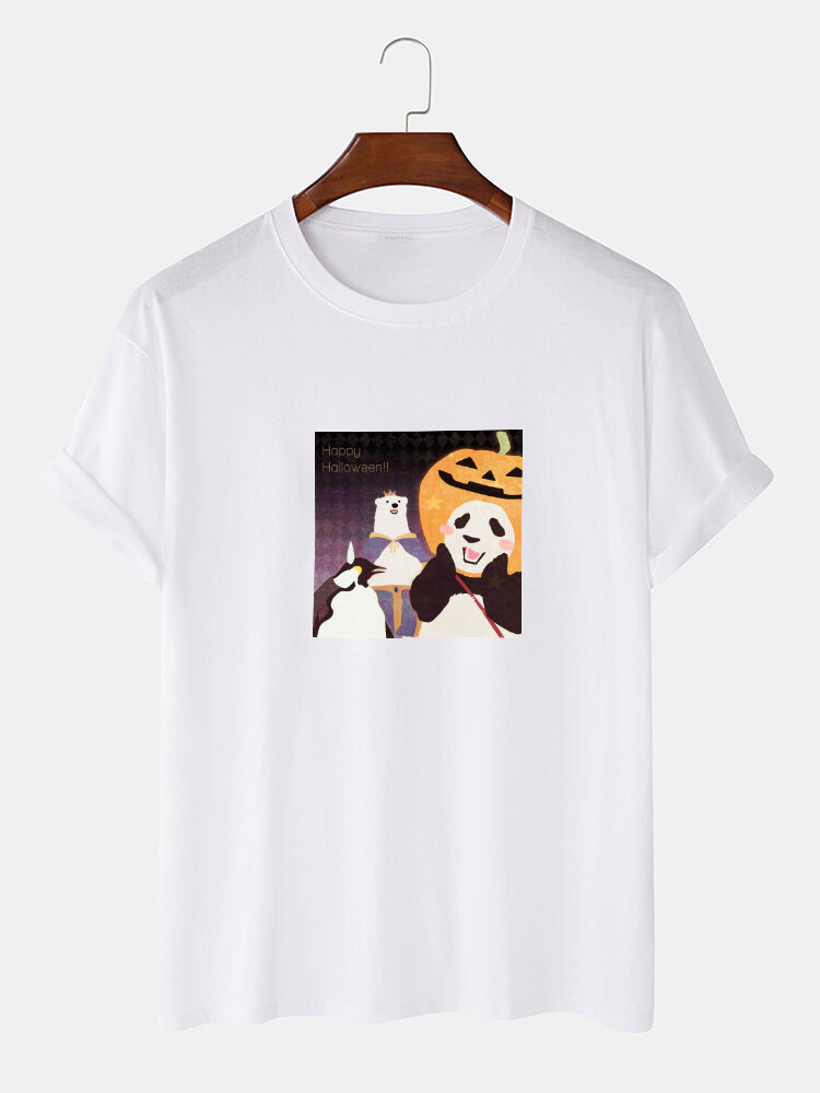 Mens 100% Cotton Cartoon Panda Print Crew Neck Short Sleeve T-Shirts – Black M