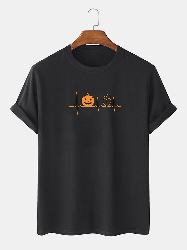 Mens 100% Cotton Cartoon Print Crew Neck Short Sleeve T-Shirts – Black S