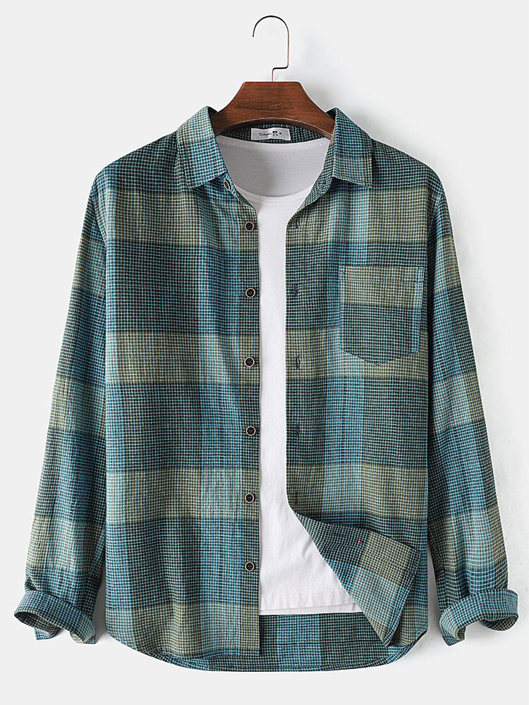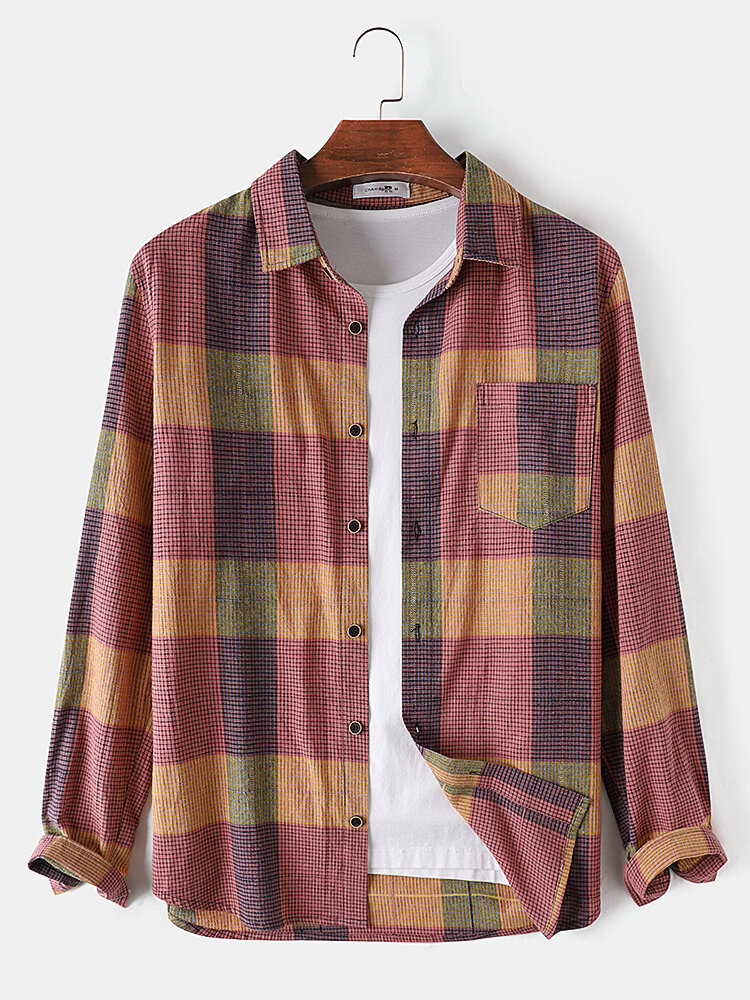 Description:Brand:ChArmkpRDecoration:PocketFit Type:Regular FitMaterial:CottonNeckline:LapelPattern Type:PlaidScene:Leisure,Home,CasualSeason:Spring,AutumnSize:XXL,L,S,XL,MSleeve:Long SleeveStyle:Vintage,Casual