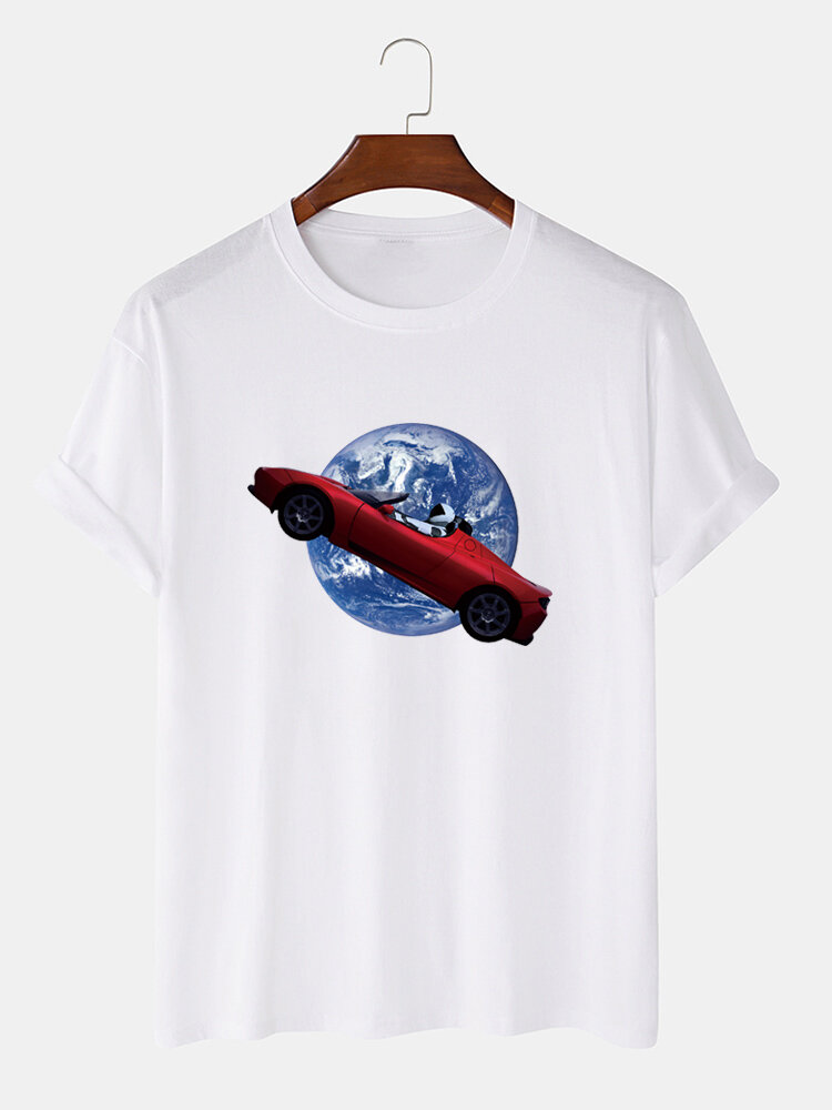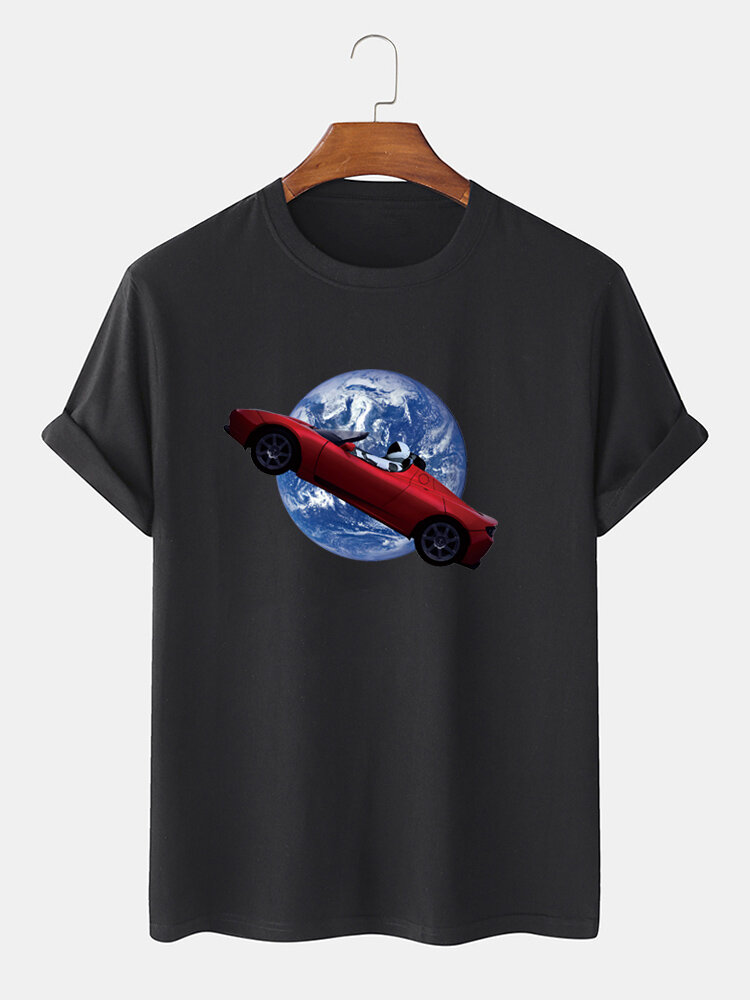 Mens 100% Cotton Funny Graphic Round Neck Casual Short Sleeve T-Shirts – Black L
