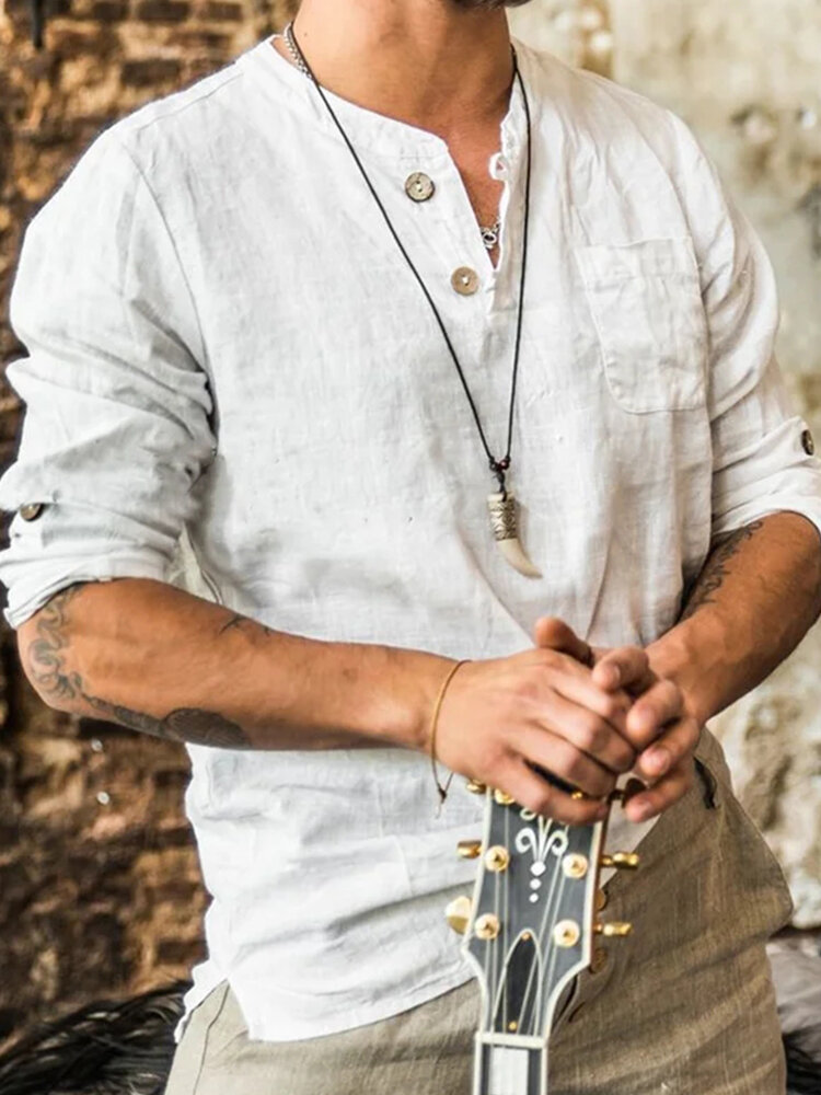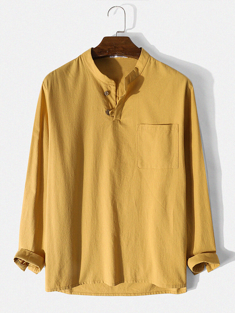 Brand:ChArmkpRDecoration:PocketFit Type:Regular FitMaterial:CottonNeckline:Henley CollarPattern Type:SolidScene:Leisure,Home,CasualSeason:Spring,AutumnSize:XXL,L,XL,S,MSleeve:Long SleeveStyle:Casual,Hawaii StyleThickness:Regular