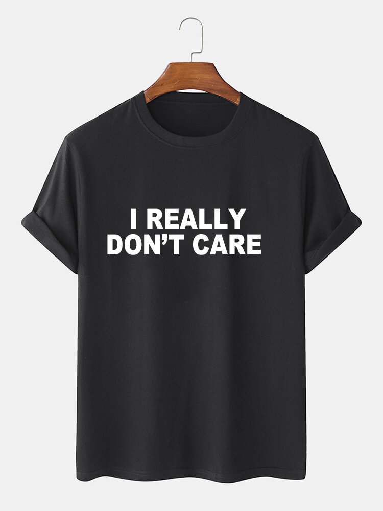 Mens 100% Cotton Letter Print Crew Neck Short Sleeve T-Shirts – Black XL