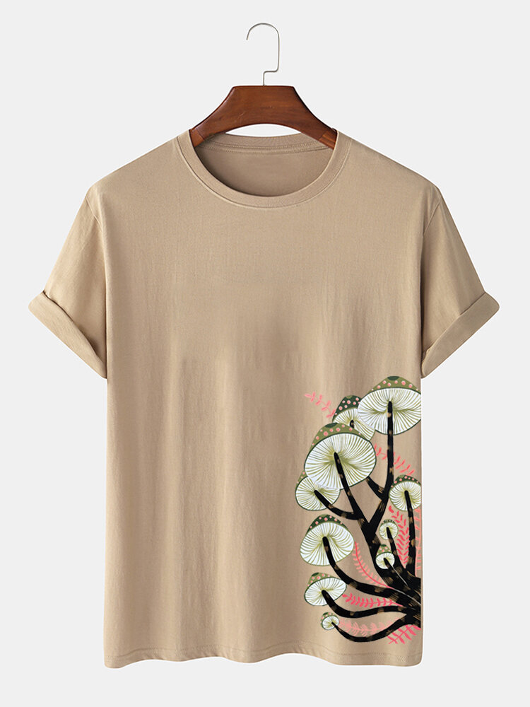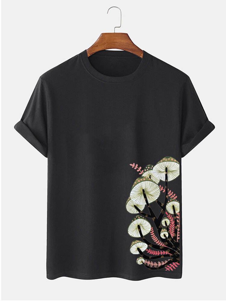 Description:Fit Type:Loose FitMaterial:CottonNeckline:Round NeckPattern Type:PlantsScene:Leisure,CasualSeason:Spring,SummerSize:M,L,S,XLSleeve:Short SleeveStyle:CasualThickness:Thin