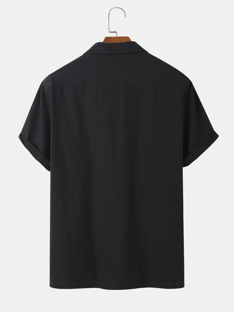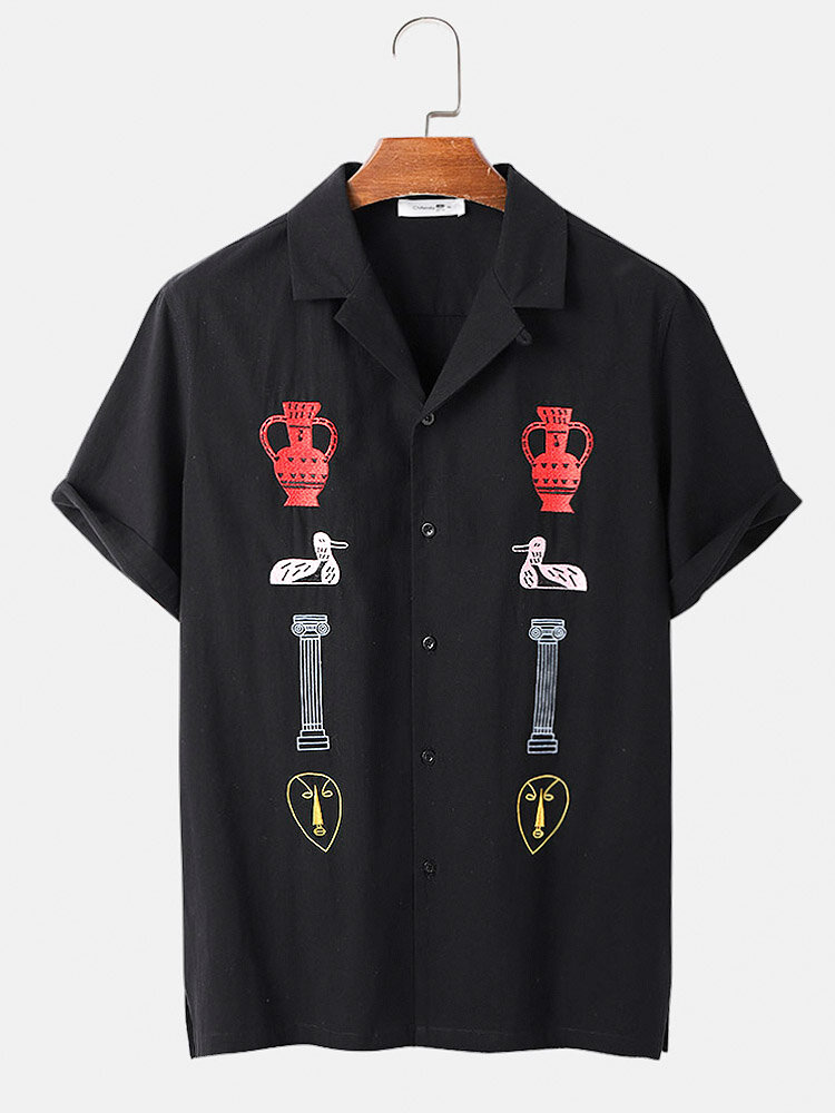 Mens 100% Cotton Mystery Totem Embroidery Revere Collar Shirt – Black S