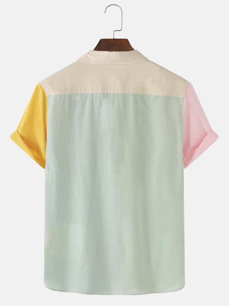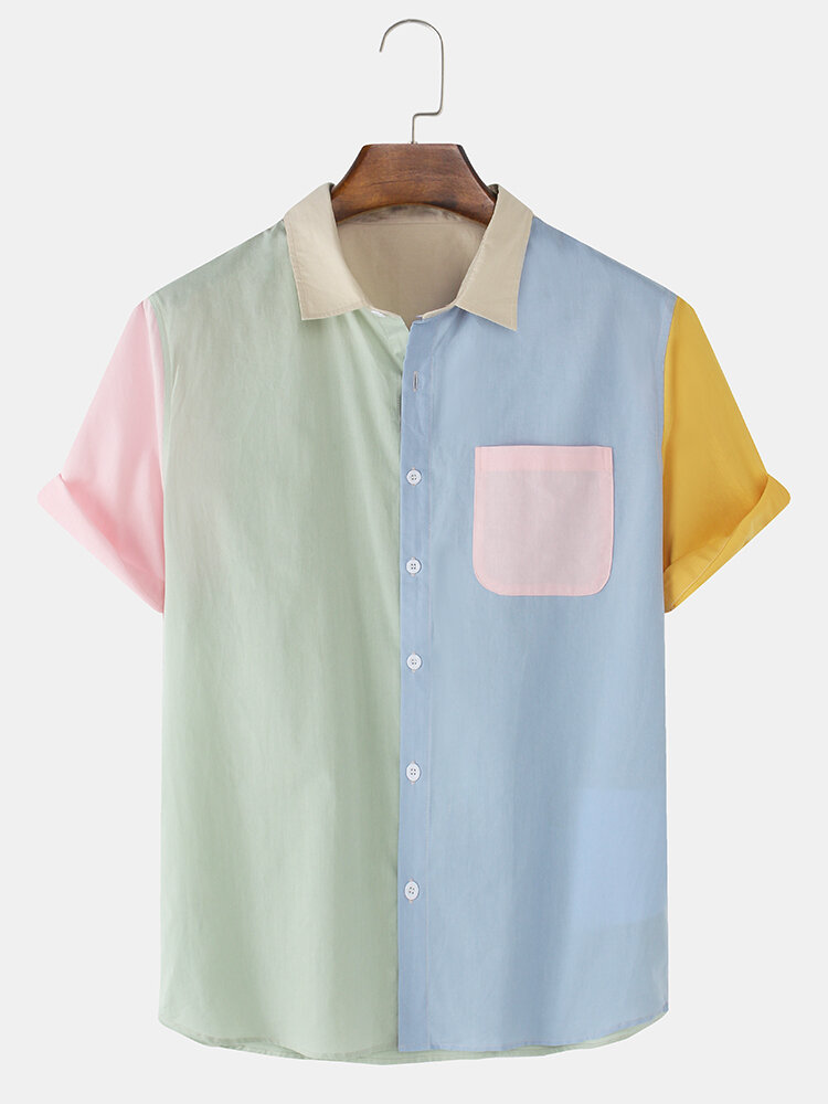Description:Decoration:Pocket,ButtonFit Type:Regular FitMaterial:CottonNeckline:LapelPattern Type:PatchworkScene:Leisure,CasualSeason:Spring,SummerSize:XXL,L,S,XLSleeve:Short SleeveStyle:CasualThickness:Regular