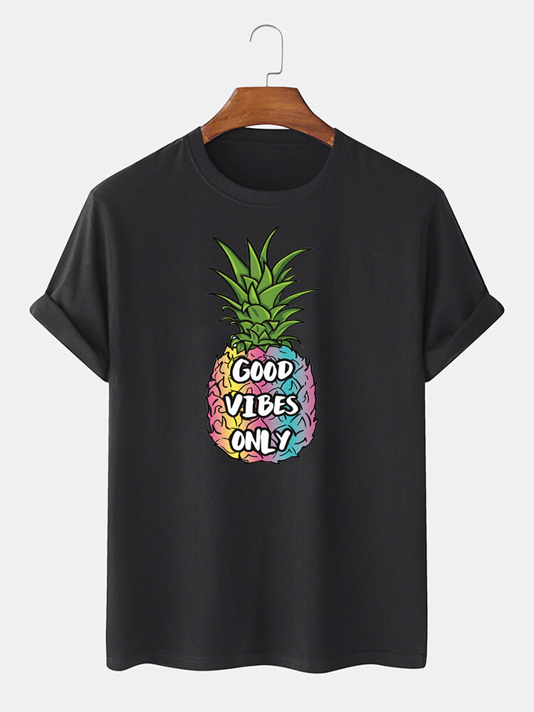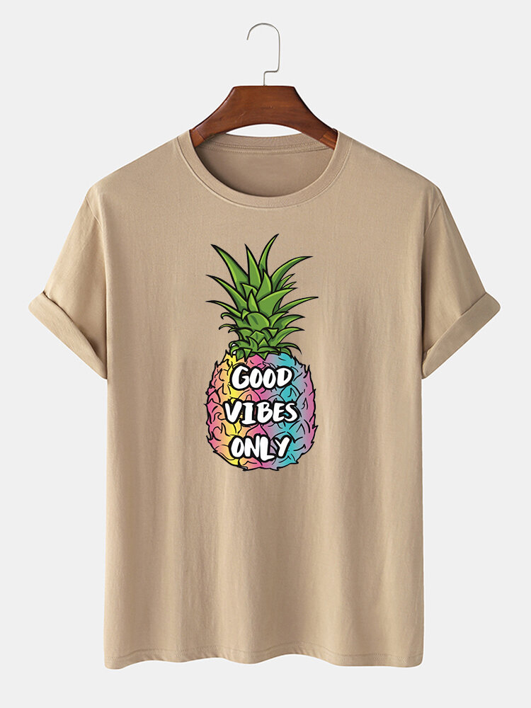 Mens 100% Cotton Pineapple Printed Round Neck Casual Short Sleeve T-Shirts – Grey S