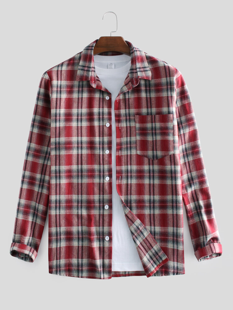 Mens 100% Cotton Plaid Printed Chest Pocket Long Sleeve – 2XL Green