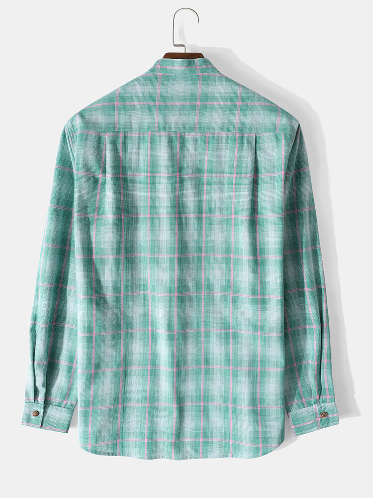 Brand:ChArmkpRDecoration:ButtonFit Type:Regular FitMaterial:CottonNeckline:Stand CollarPattern Type:PlaidScene:Leisure,CasualSeason:Spring,AutumnSize:M,XXL,L,XL,SSleeve:Long SleeveStyle:CasualThickness:Regular