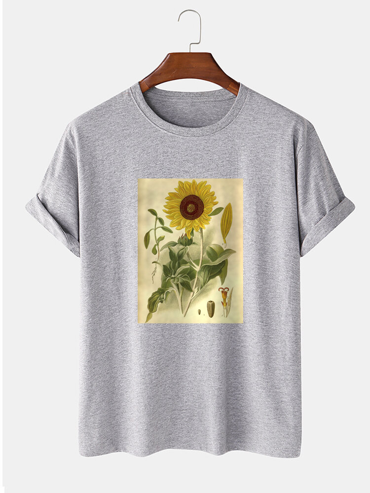 Description:Fit Type:Regular FitMaterial:CottonNeckline:Round NeckPattern Type:Ditsy FloralScene:Leisure,CasualSeason:Spring,SummerSize:M,L,S,XLSleeve:Short SleeveStyle:CasualThickness:Regular