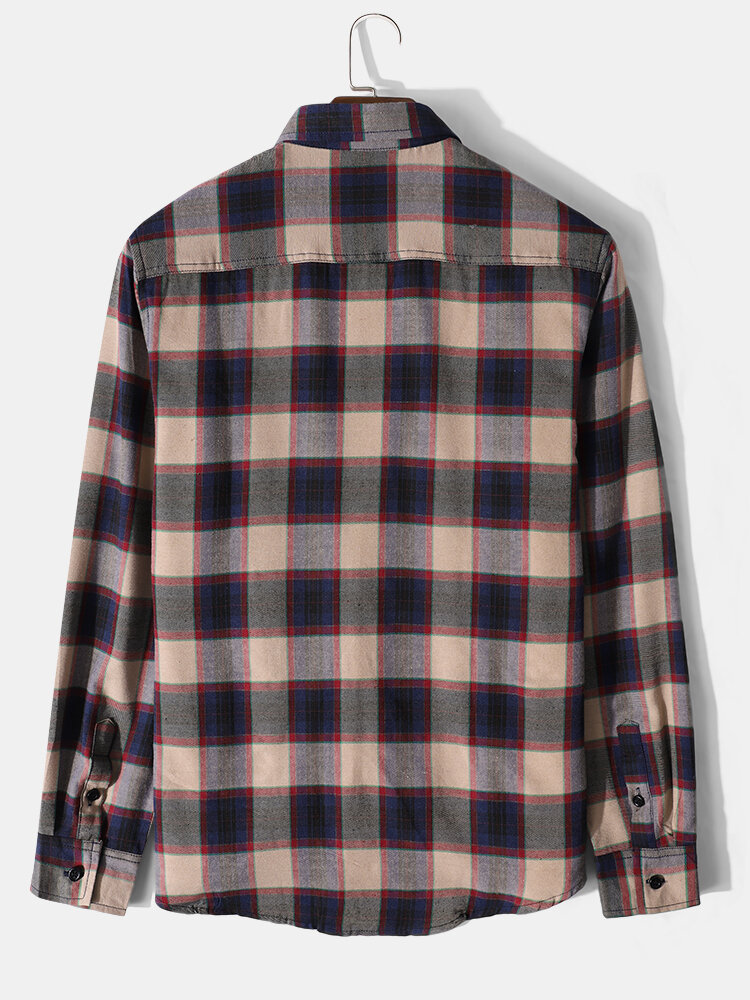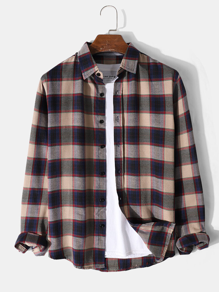 Description:Decoration:ButtonFit Type:Regular FitMaterial:CottonNeckline:LapelPattern Type:PlaidScene:Leisure,CasualSeason:Spring,AutumnSize:L,S,XL,MSleeve:Long SleeveStyle:Vintage,CasualThickness:Regular