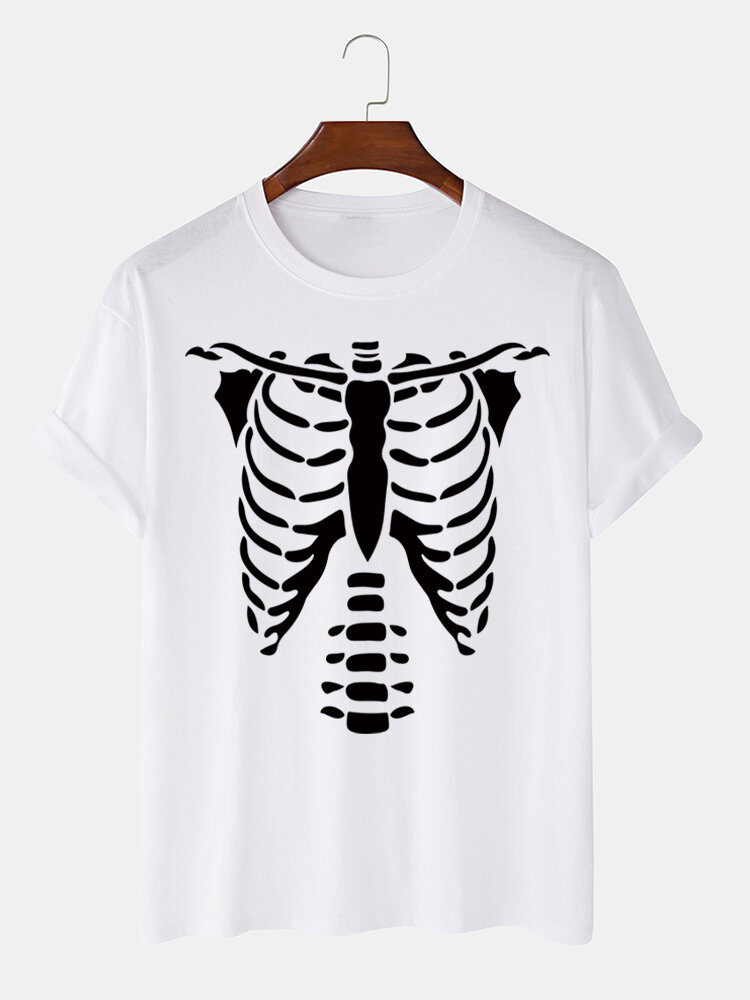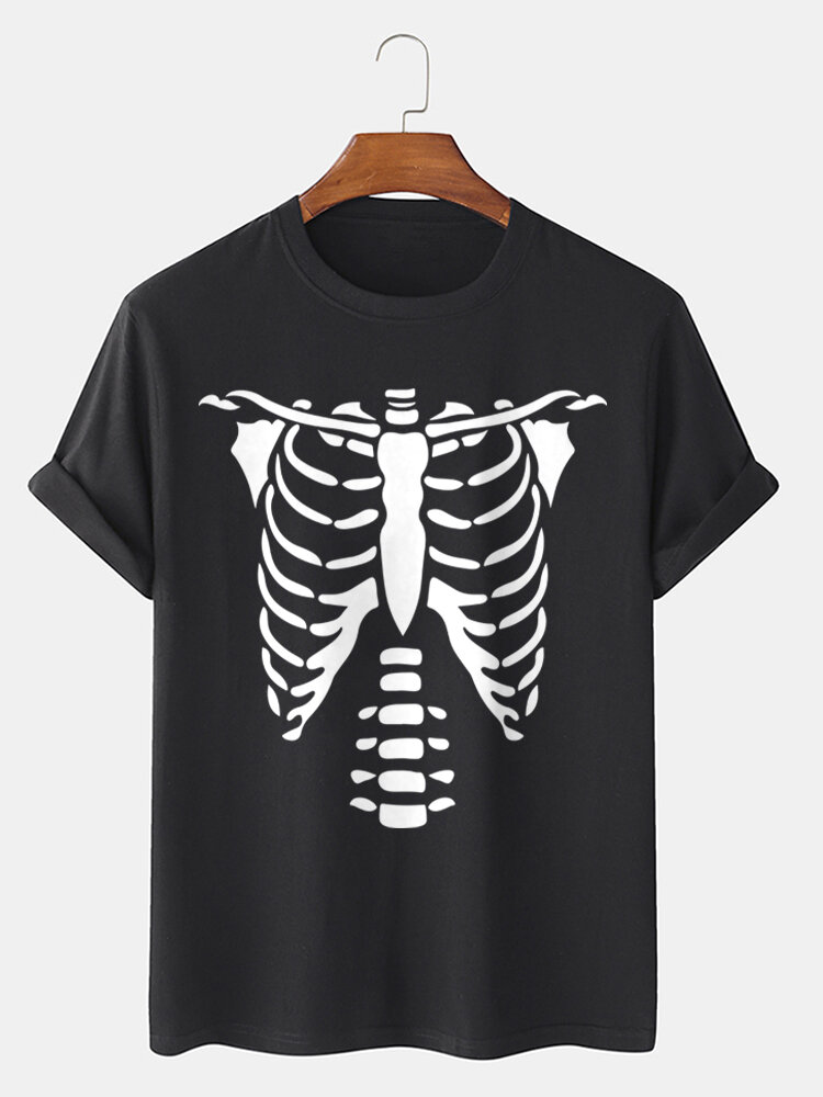 Mens 100% Cotton Skeleton Bones Printed T-shirt – Black L