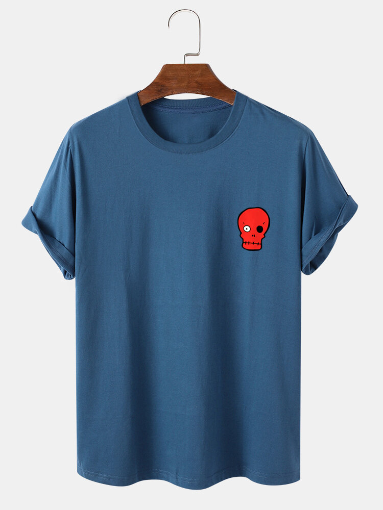 Mens 100% Cotton Skeleton Cartoon Round Neck Casual T-Shirts – Black M