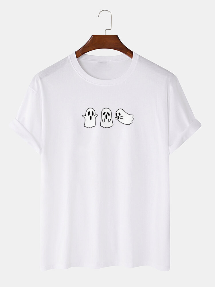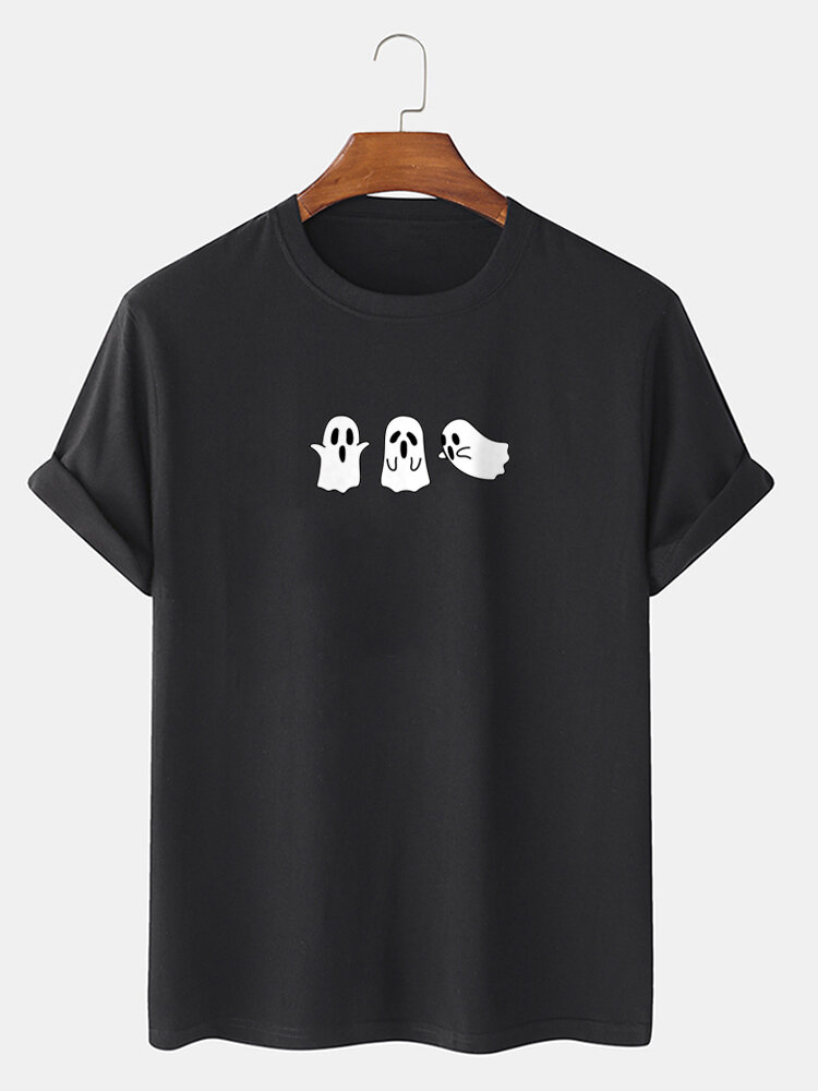 Mens 100% Cotton Solid Cartoon Ghost Printing Funny T-Shirt – Black 2XL