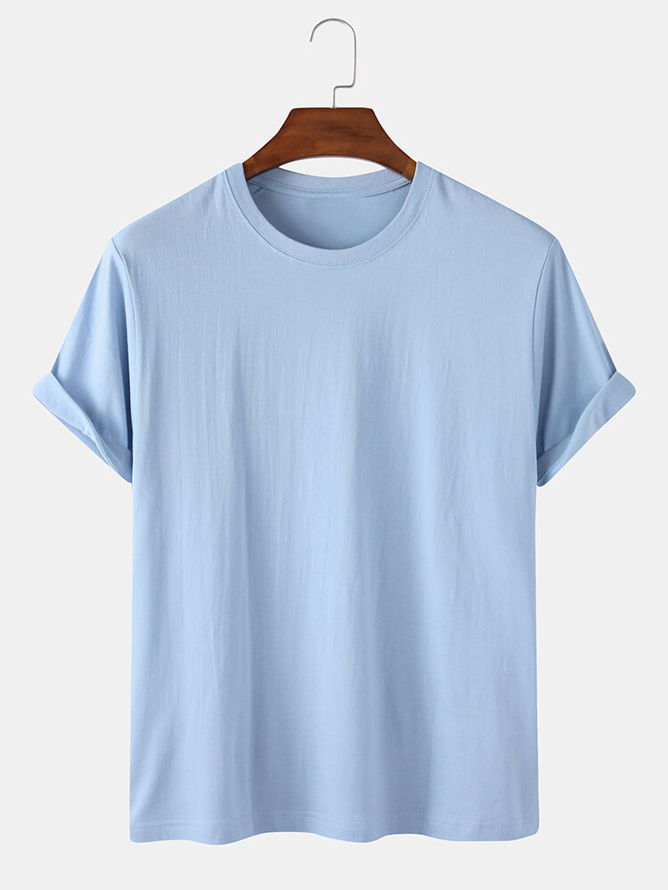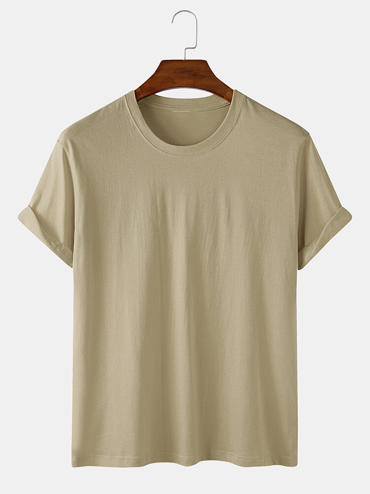 Description:Fit Type:Regular FitMaterial:CottonNeckline:Round NeckPattern Type:SolidScene:Leisure,CasualSeason:Spring,SummerSize:M,L,S,XLSleeve:Short SleeveStyle:Casual