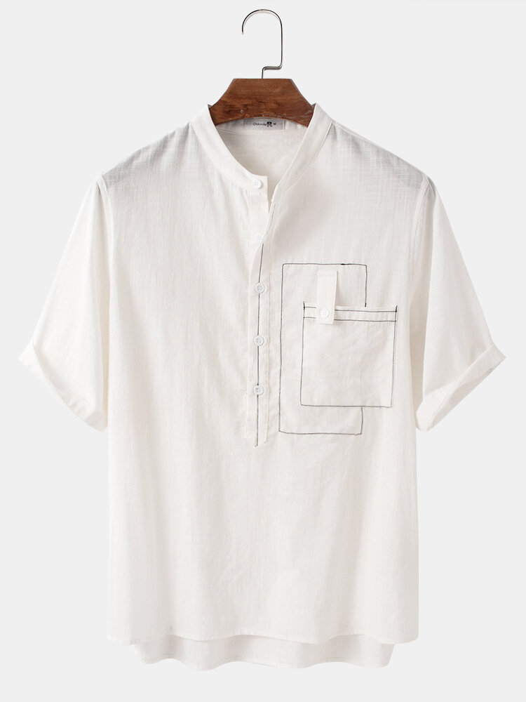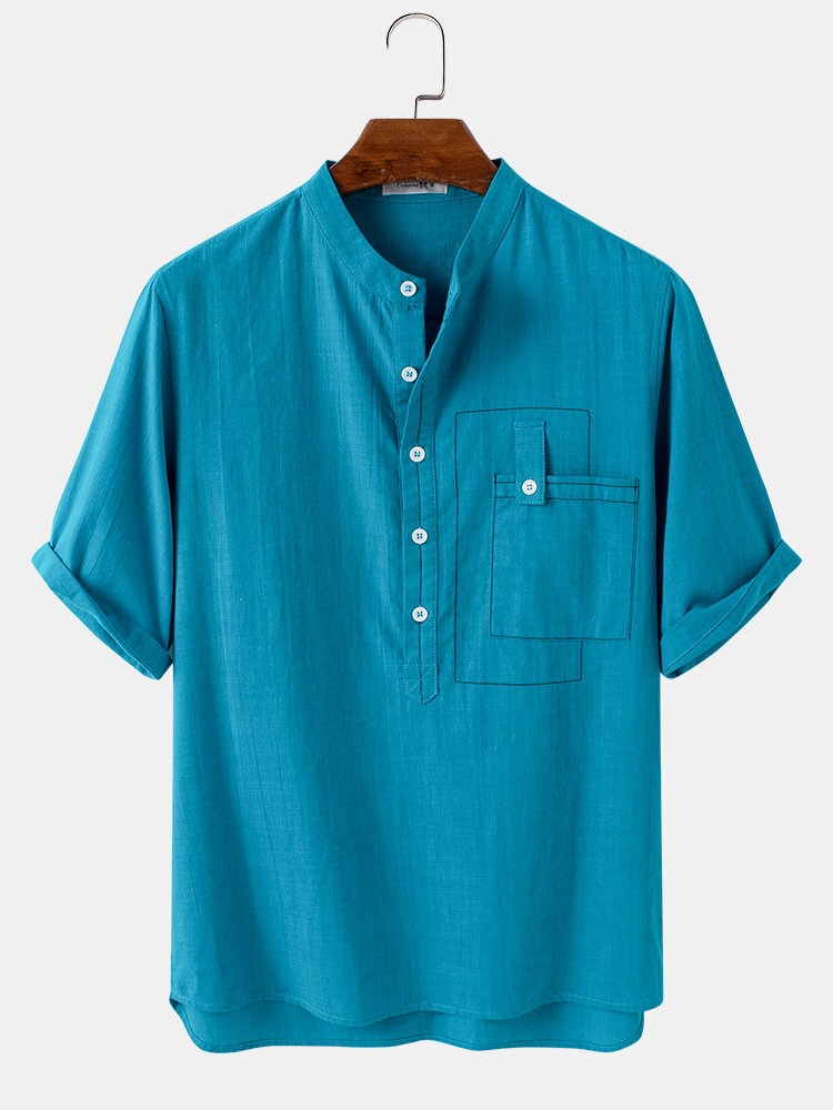 Brand:ChArmkpRDecoration:PocketFit Type:Regular FitMaterial:CottonNeckline:Stand CollarPattern Type:SolidScene:Leisure,Home,CasualSeason:Spring,Summer,autumnSize:XXXL,XXL,L,XL,MSleeve:Short SleeveStyle:CasualThickness:Regular