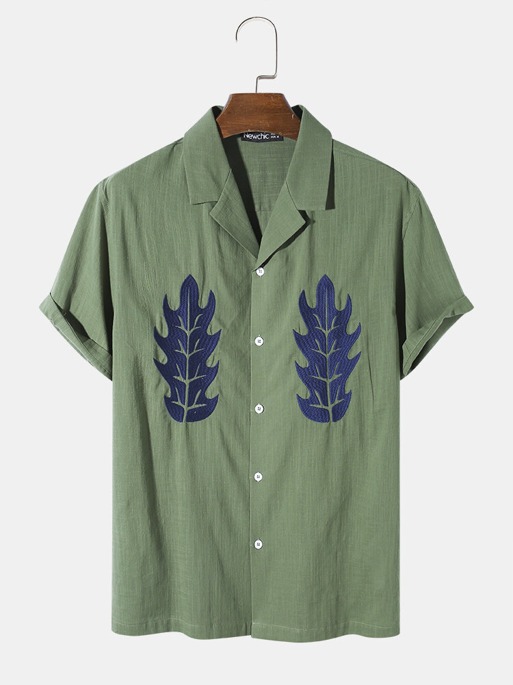 Mens 100% Cotton Towelling Embroidery Tree Casual Shirts – Green S