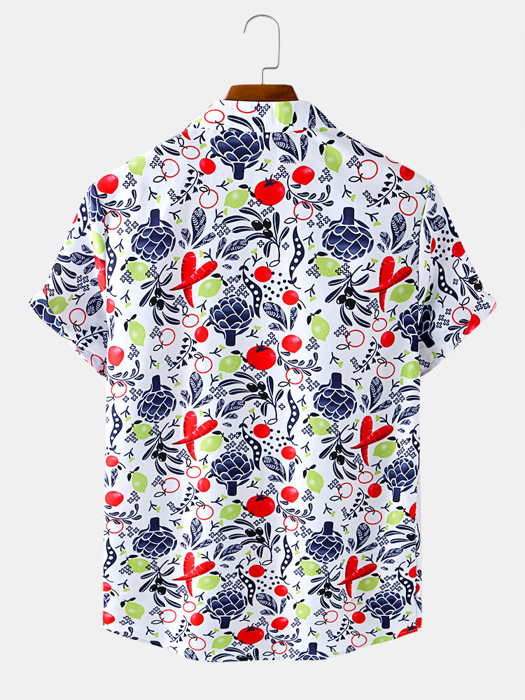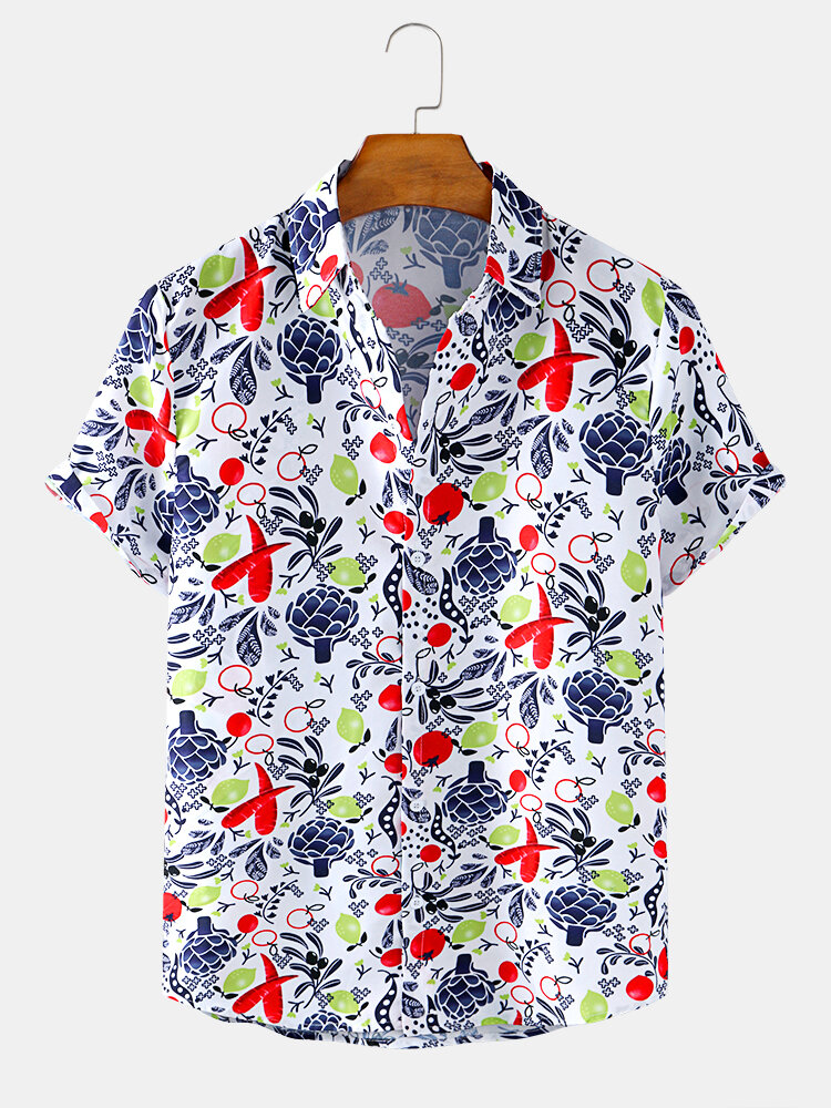 Description:Fit Type:Regular FitMaterial:PolyesterNeckline:LapelPattern Type:Fruit&VegetableScene:Leisure,Home,CasualSeason:SummerSize:L,S,XL,MSleeve:Short SleeveStyle:Casual