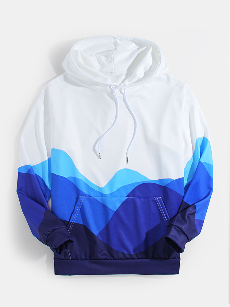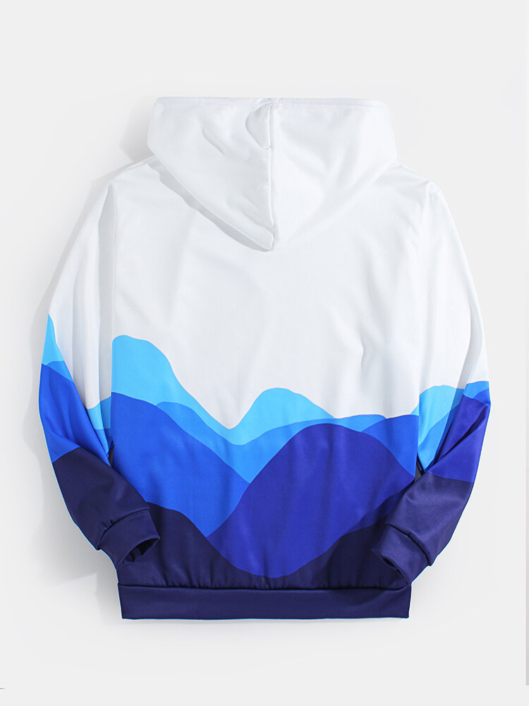 Mens Abstract Ombre Mountain Landscape Graphics Long Sleeve Hoodies With Pocket – White S