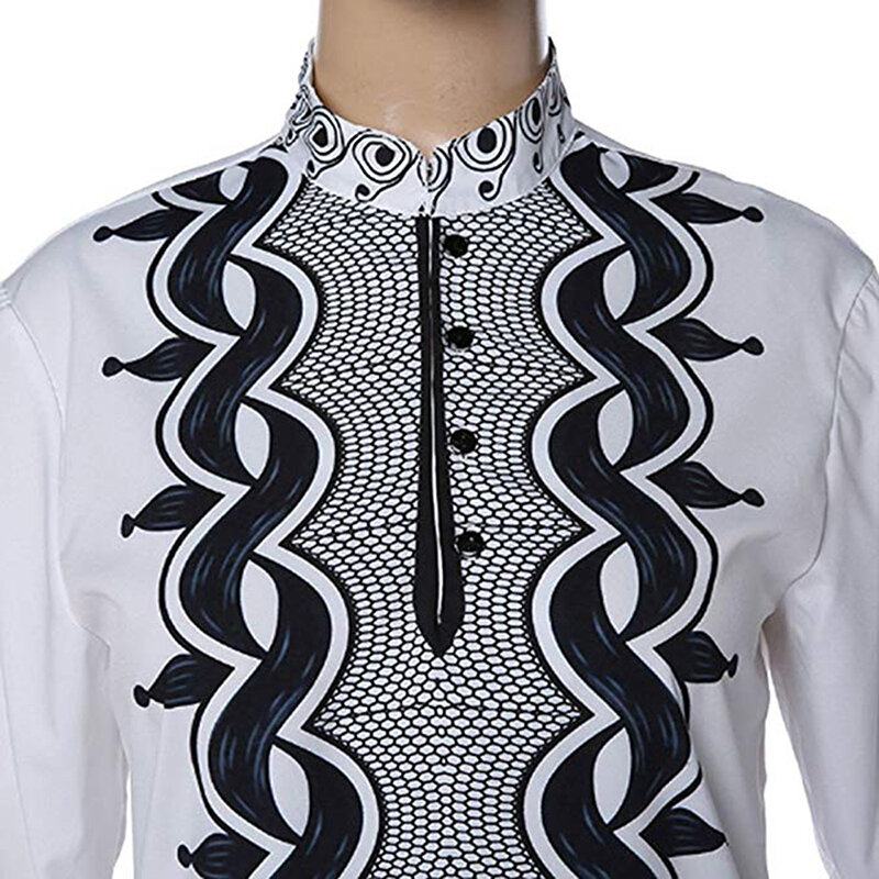 Men’s African Style Loose Printing Casual T-shirts – S White