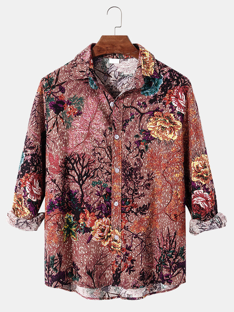 Description:Fit Type:Loose FitMaterial:FlaxNeckline:LapelPattern Type:PlantsScene:Leisure,HomeSeason:Spring,AutumnSize:XXL,L,S,XL,MSleeve:Long SleeveStyle:CasualThickness:Regular