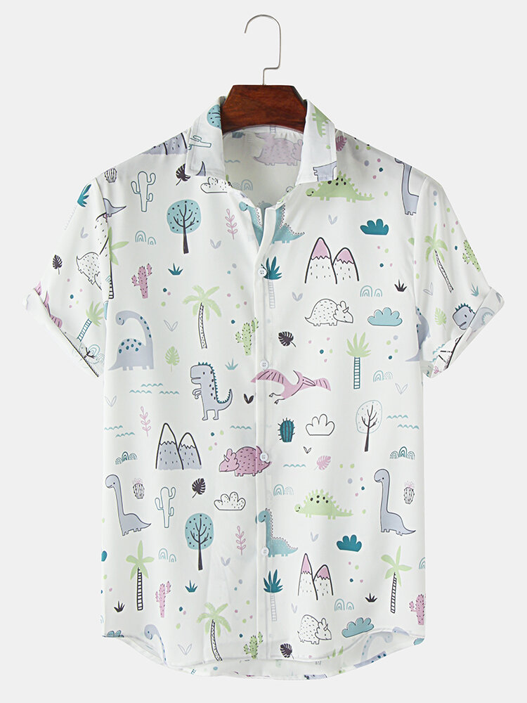 Decoration:ButtonFit Type:Regular FitMaterial:PolyesterNeckline:LapelPattern Type:Animal,Cartoon,PlantsScene:Leisure,CasualSeason:Spring,SummerSize:XXXL,XXL,L,S,XL,XXXXL,MSleeve:Short SleeveStyle:Casual,CartoonThickness:Thin