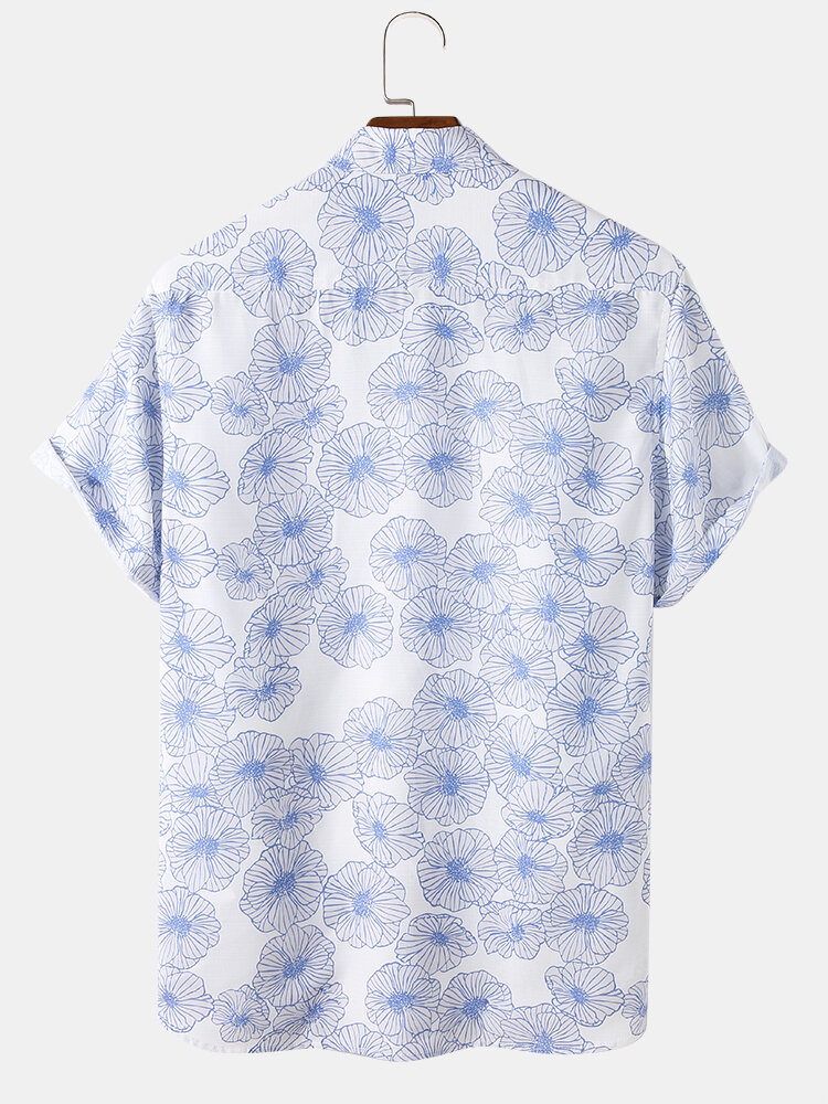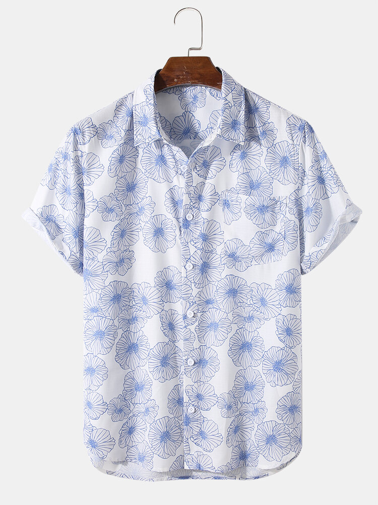 Brand:ChArmkpRDecoration:PocketFit Type:Regular FitMaterial:PolyesterNeckline:LapelPattern Type:Ditsy FloralScene:Leisure,Home,CasualSeason:Spring,SummerSize:XXL,L,S,XL,MSleeve:Short SleeveStyle:Casual,Hawaii StyleThickness:Regular