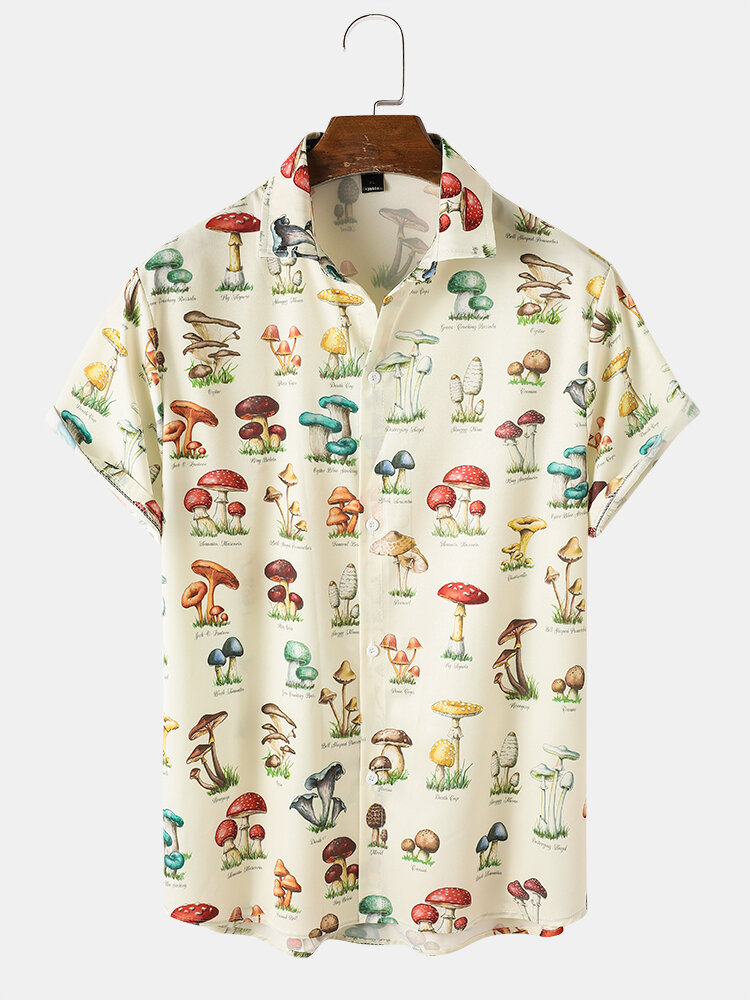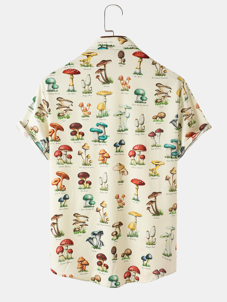 Mens Allover Mushroom Pattern Print Community Spirit Short Sleeve Shirt – Apricot S