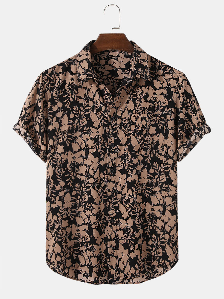 Brand:ChArmkpRDecoration:Pocket,Button,PatternFit Type:Regular FitMaterial:PolyesterNeckline:LapelPattern Type:PlantsScene:Leisure,CasualSeason:Spring,SummerSize:XXL,L,S,XL,MSleeve:Short SleeveStyle:Vintage,CasualThickness:Regular