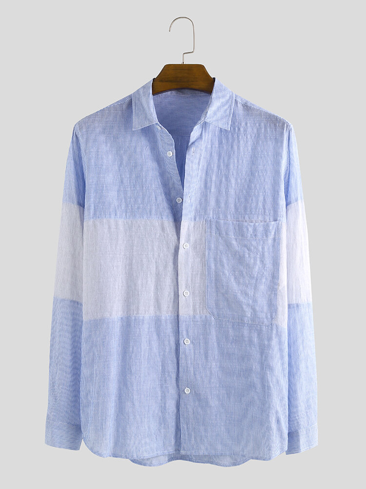 Item Type: Shirts Pattern Type: PatchworkGender: Men Fit Type: FitStyle: Casual,Fashion Thickness: RegularCollar: Turn Down Collar Season: Spring, AutumnMaterial: 100% CottonSleeve Length: Long SleeveColor: Blue,Grey,BeigeCuff Type: Shirt Sleeve Occasion: Leisure,Home,Daylife Package includes