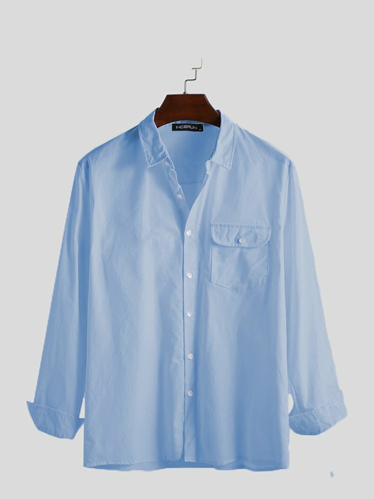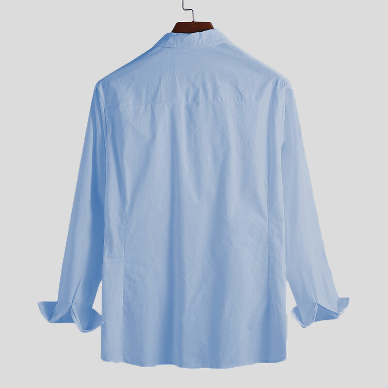Men’s Autumn Thin Button Shirts Long Sleeve Lightweight Casual Leisure Tops Tees – 3XL Blue