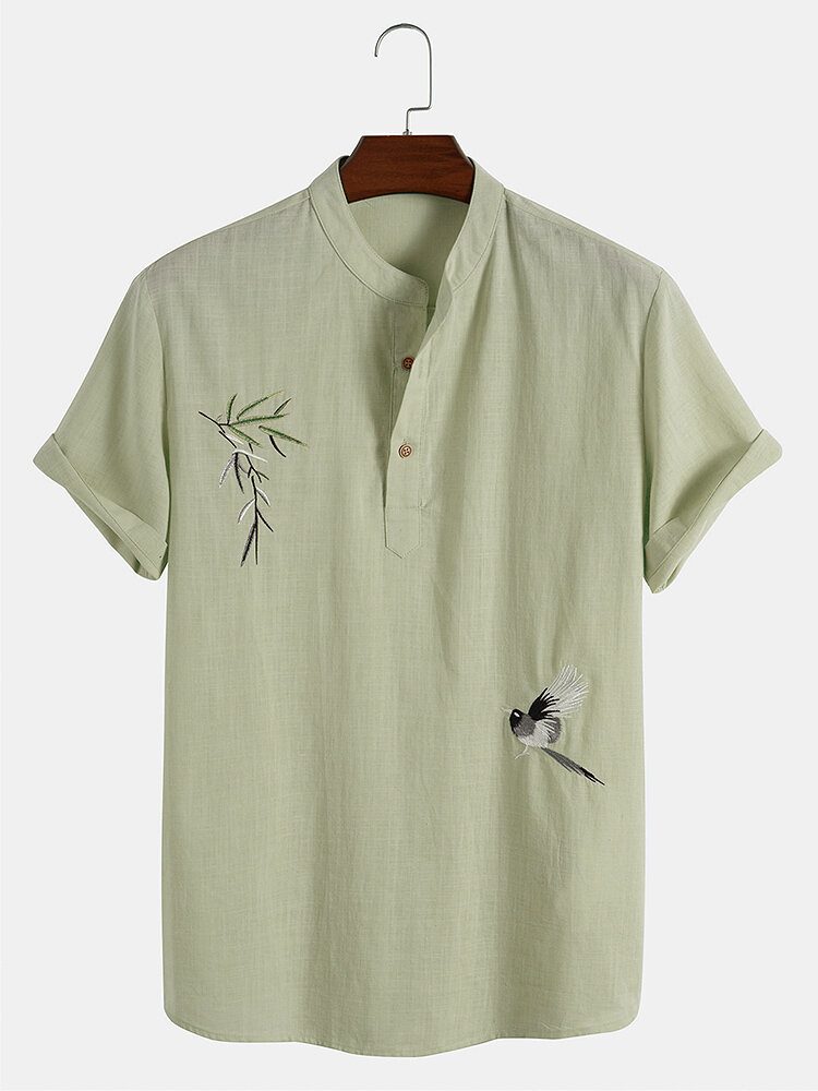 Brand:ChArmkpRDecoration:PatternFit Type:Regular FitMaterial:100%CottonNeckline:Stand CollarPattern Type: EmbroideryScene:Leisure,Home,CasualSeason:SummerSize:M,XXL,L,S,XLSleeve:Short SleeveStyle:CasualThickness:Regular