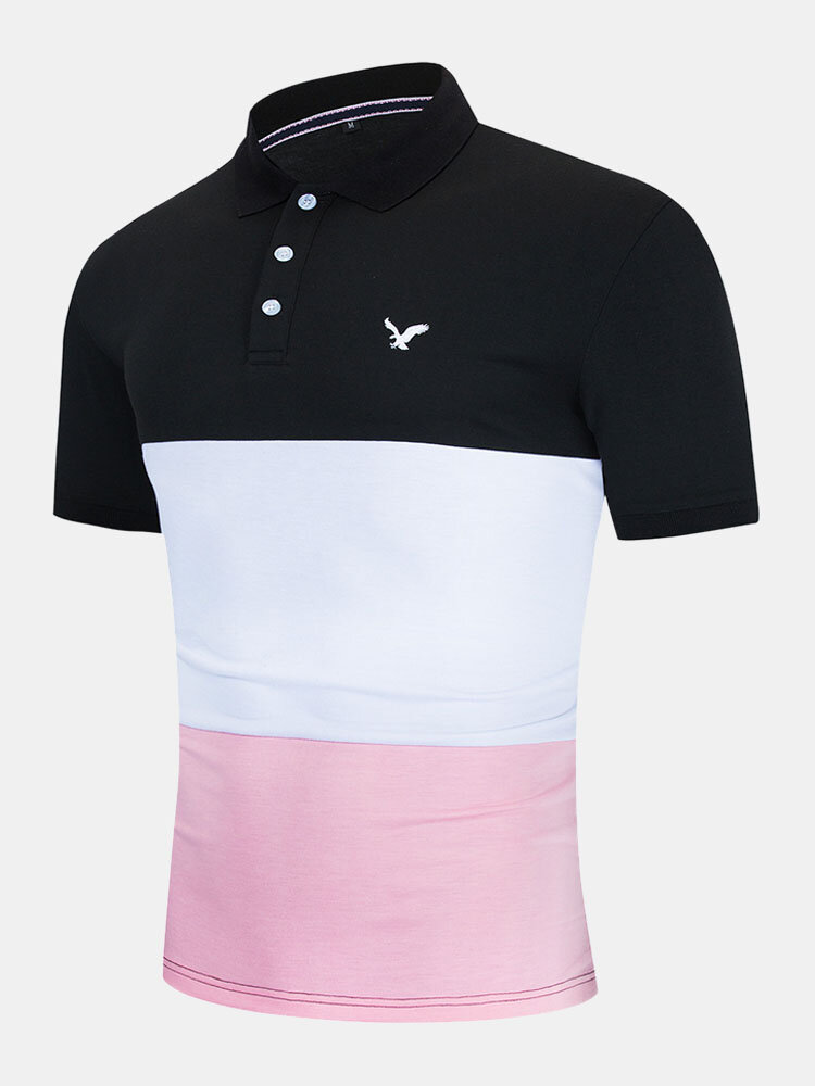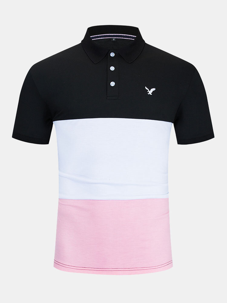 Mens Business Patchwork Buttons Cotton Casual Golf Shirts – Black S