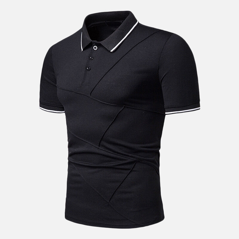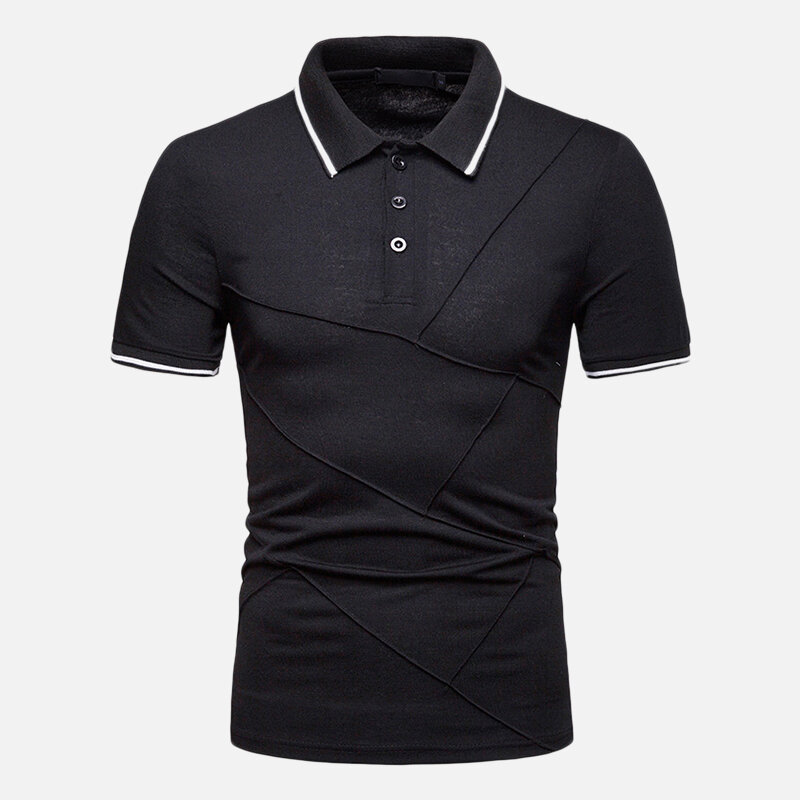 Mens Business Turn-down Collar Splice Cotton Slim Golf Shirts – S Black