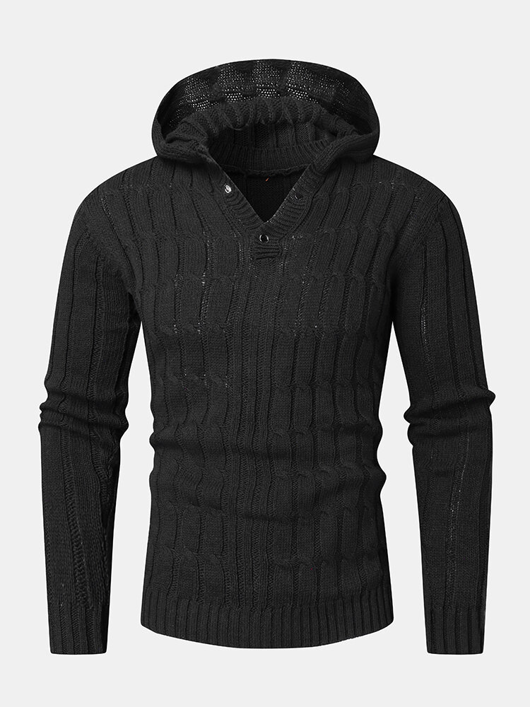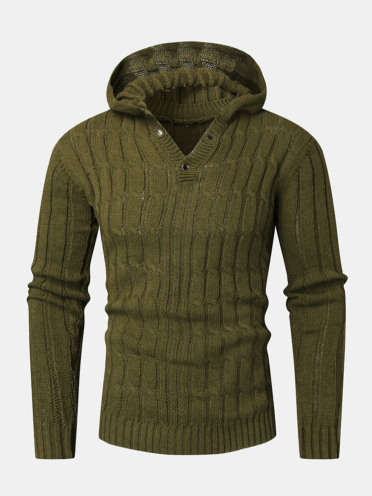 Mens Cable Solid Color Long Sleeve Warm Knitting Hooded Sweaters – Green L