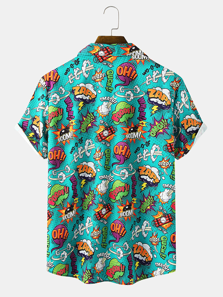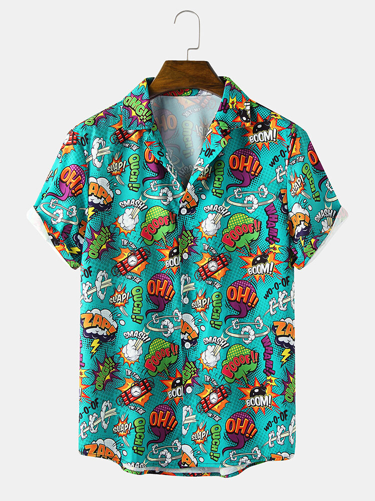 Mens Caroon Letter Revere Collar Short Sleeve Shirt – Green S