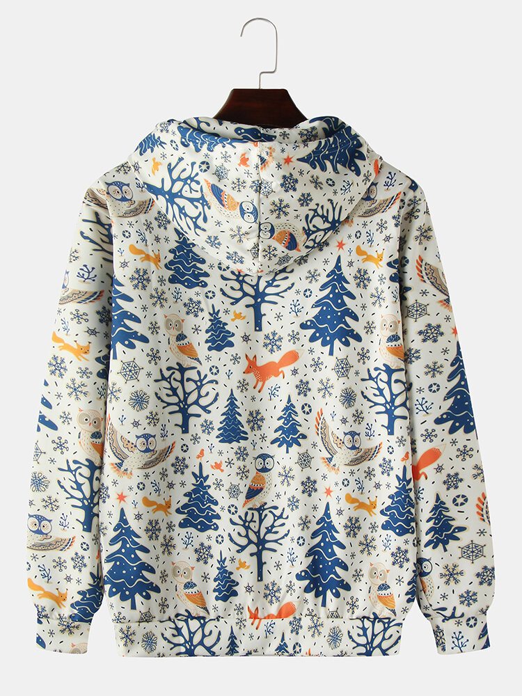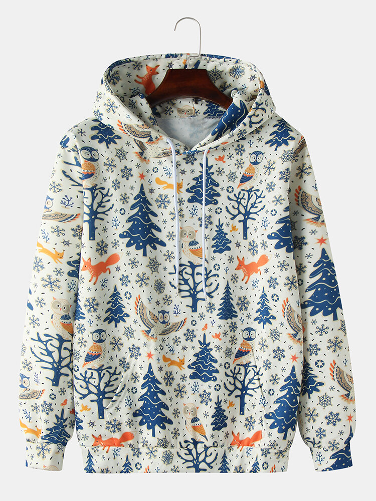 Mens Cartoon Animal & Plant Print Kangaroo Pocket Drawstring Hoodies – M Apricot