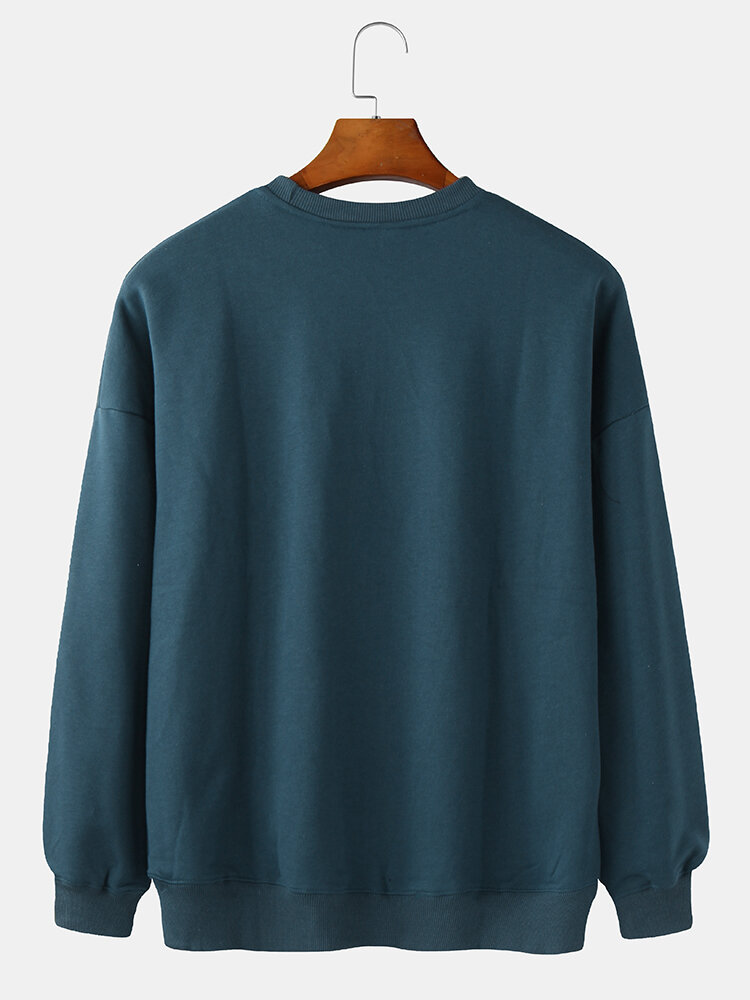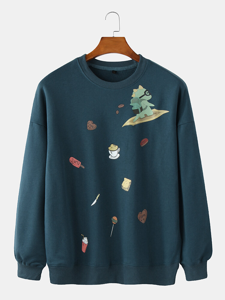 Mens Cartoon Animal Print Round Neck Cute Pullover Long Sleeve Sweatshirts – White M
