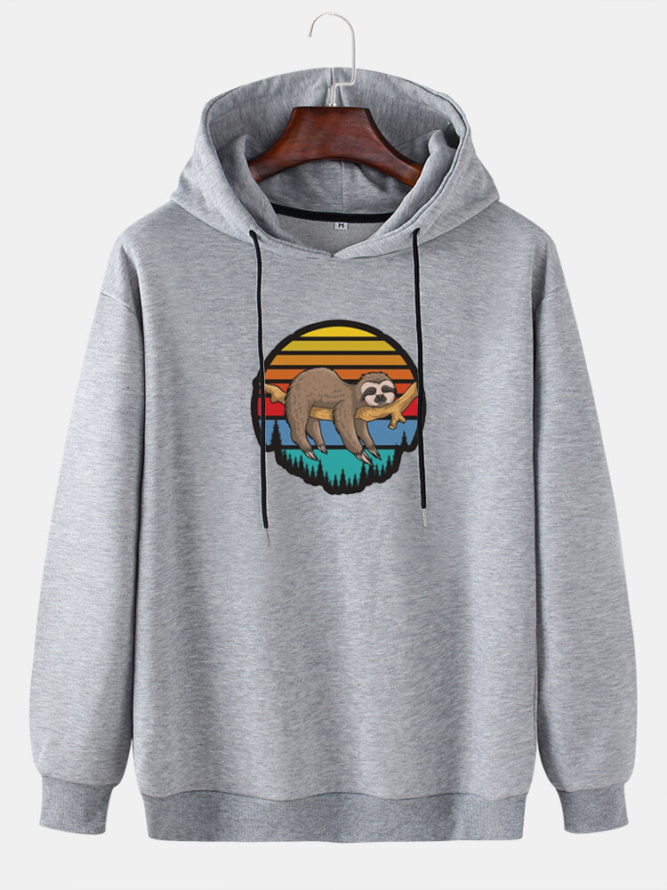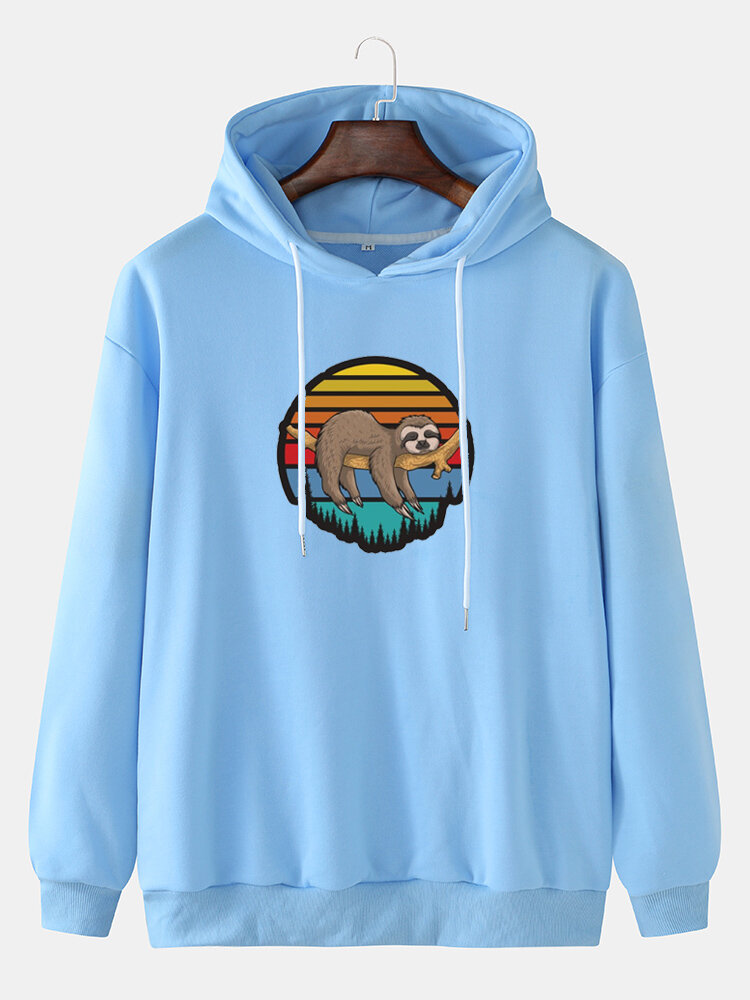 Mens Cartoon Animal Sloth Print Drop Shoulder Long Sleeve Hoodies – Pink M