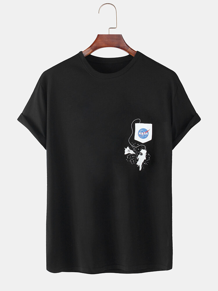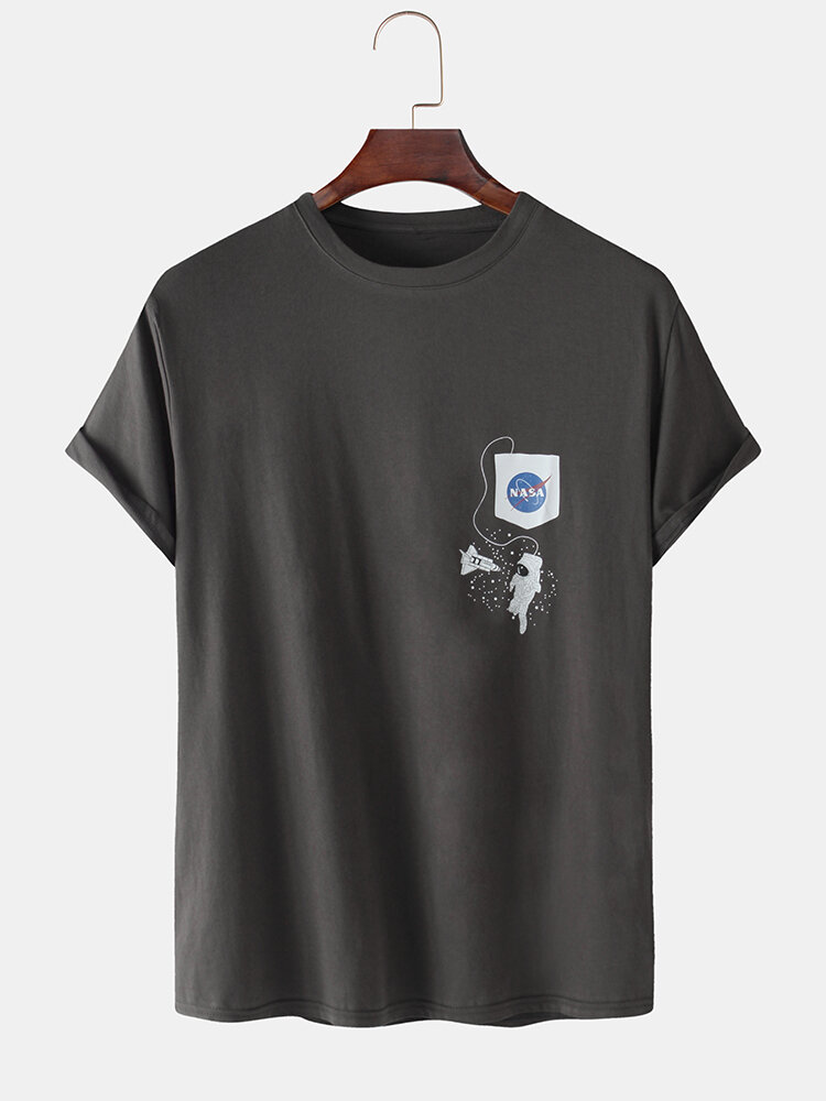 Mens Cartoon Astronaut Print Short Sleeve Loose Round Neck T-Shirts – White M