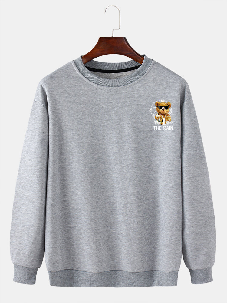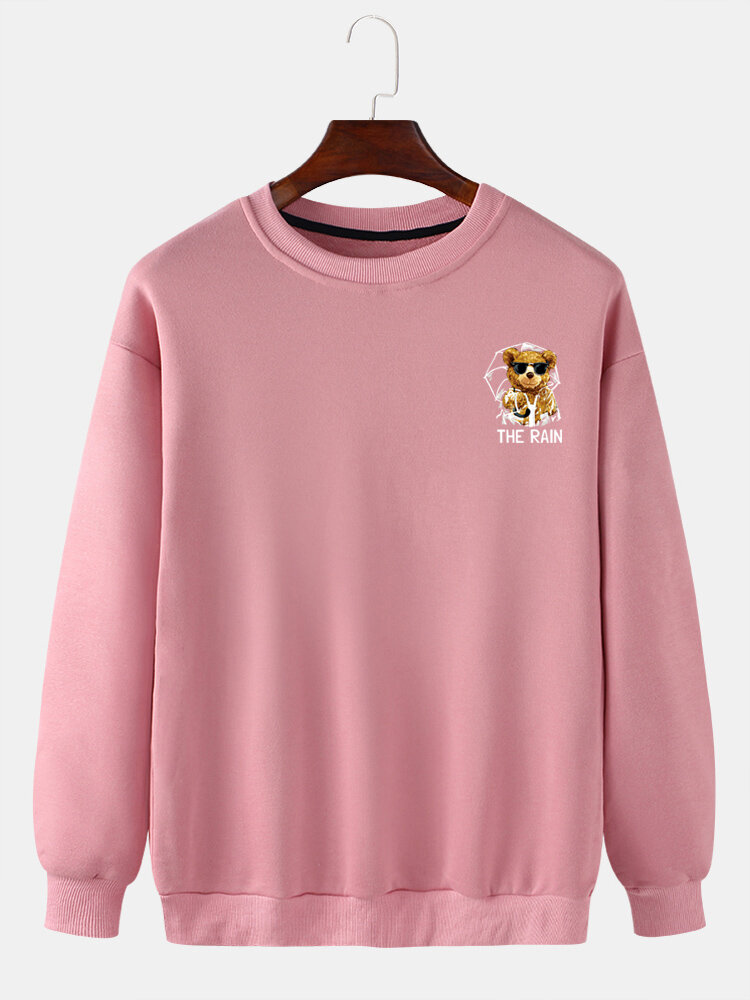 Mens Cartoon Bear Print Pullover Long Sleeve Casaul Sweatshirts – Red XL