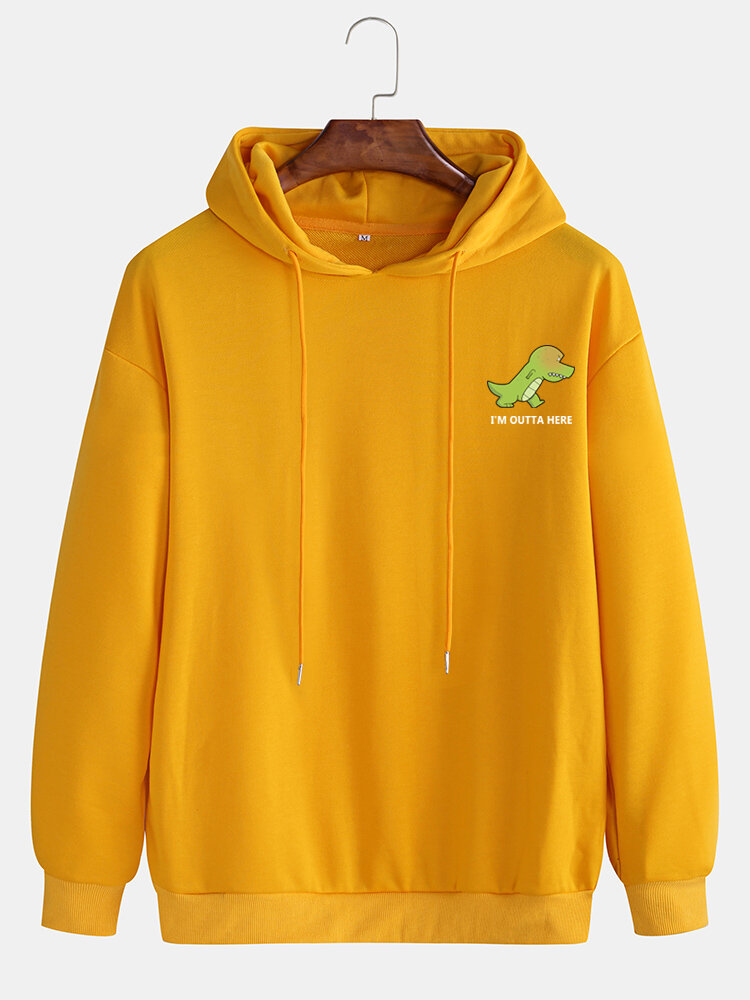Mens Cartoon Dinosaur Letter Print Cotton Casual Drawstring Overhead Hoodies – Pink 3XL