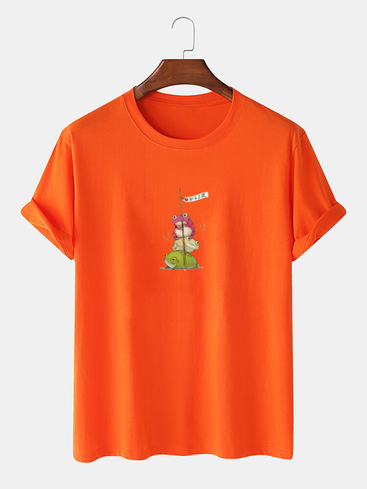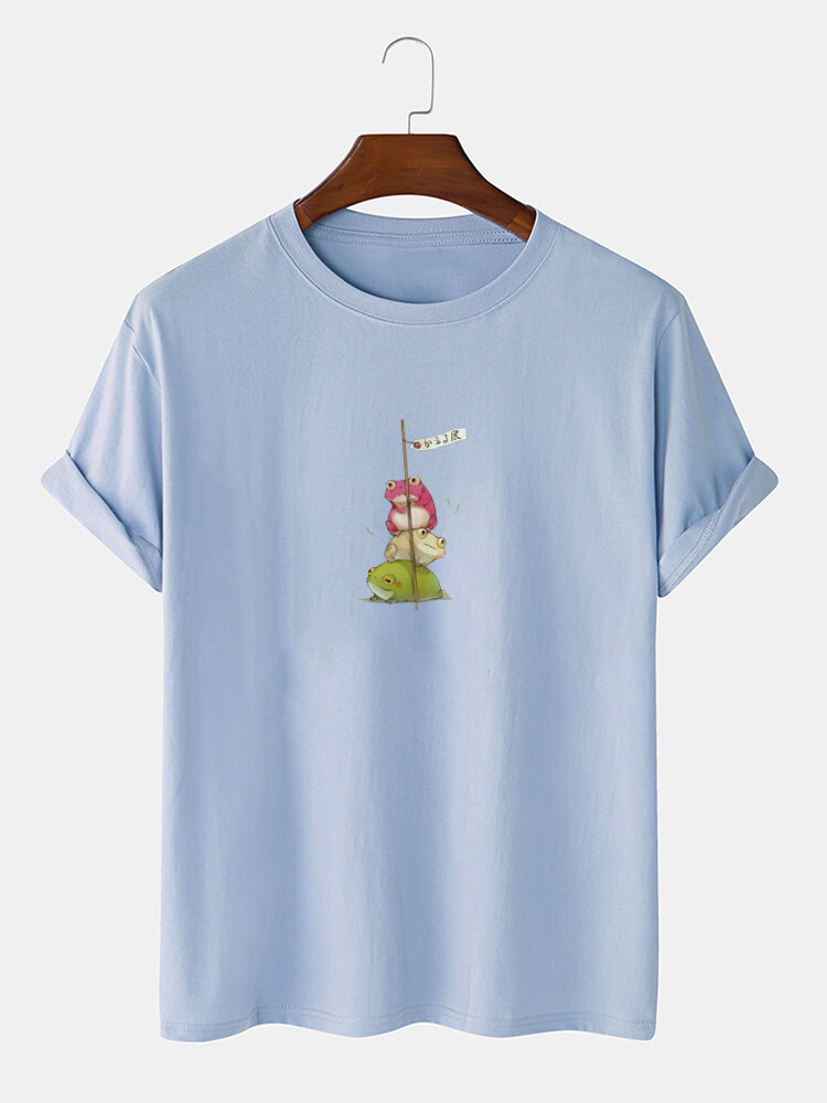 Mens Cartoon Frog Graphic 100% Cotton Casual Short Sleeve T-Shirts – Black L
