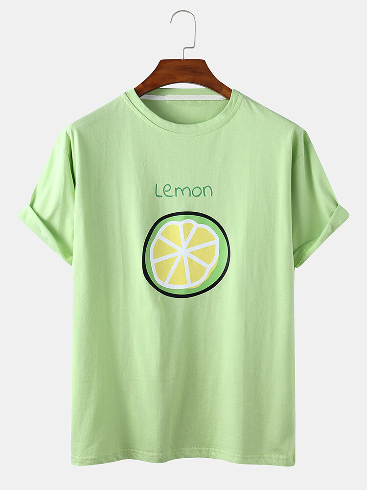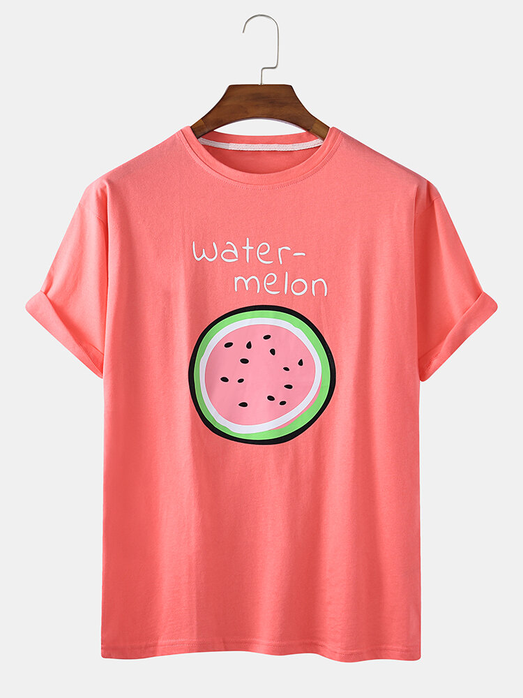 Mens Cartoon Fruit Print Crew Neck Short Sleeve T-Shirts – White XL