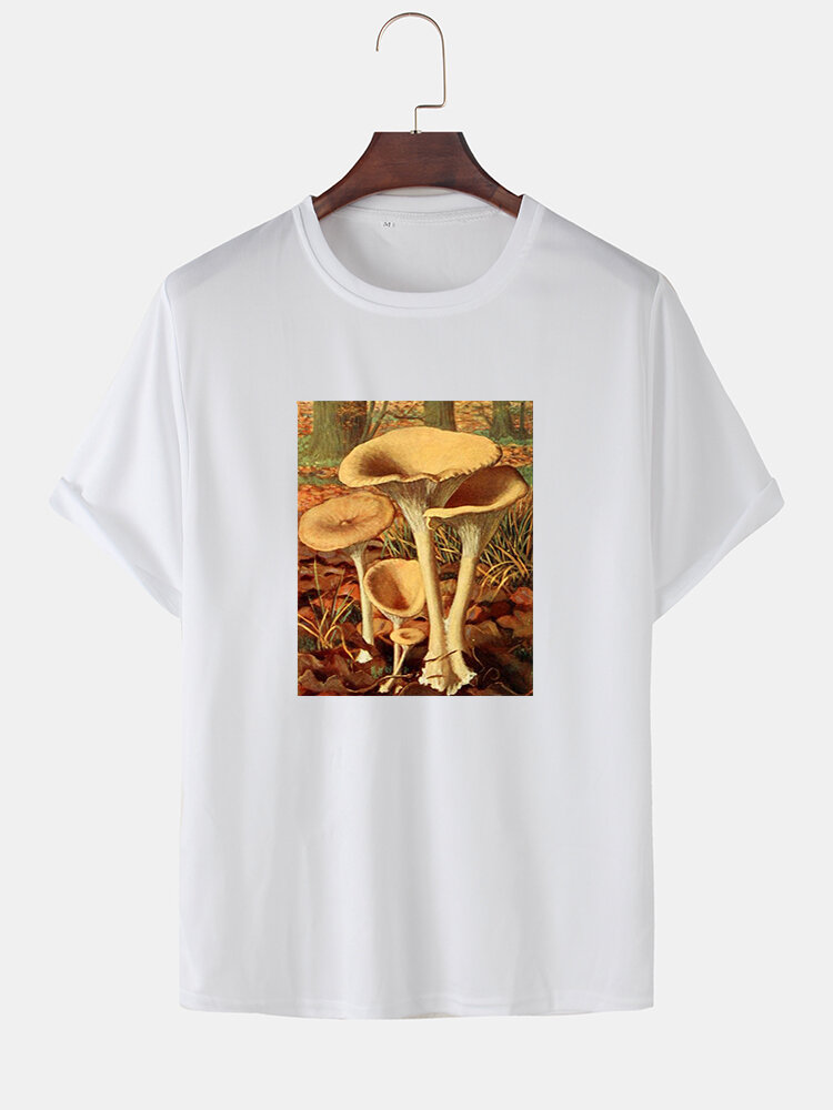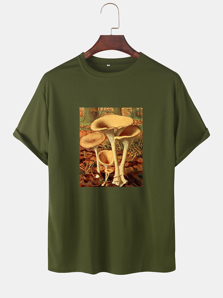 Mens Cartoon Mushroom Graphic O-Neck Community Spirit Cotton Short Sleeve T-Shirts – Red L