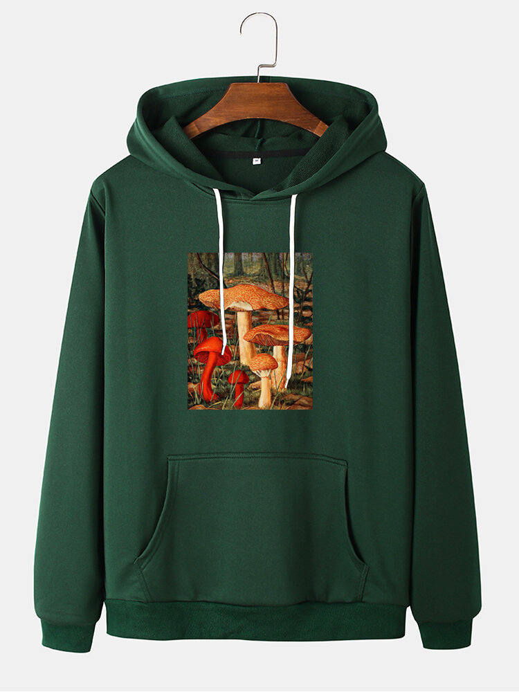 Mens Cartoon Mushroom Graphics Community Spirit Cotton Drawstring Hoodies – Wine Red XL