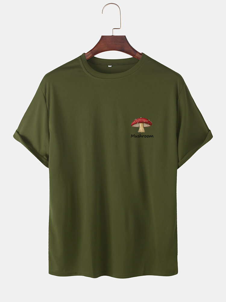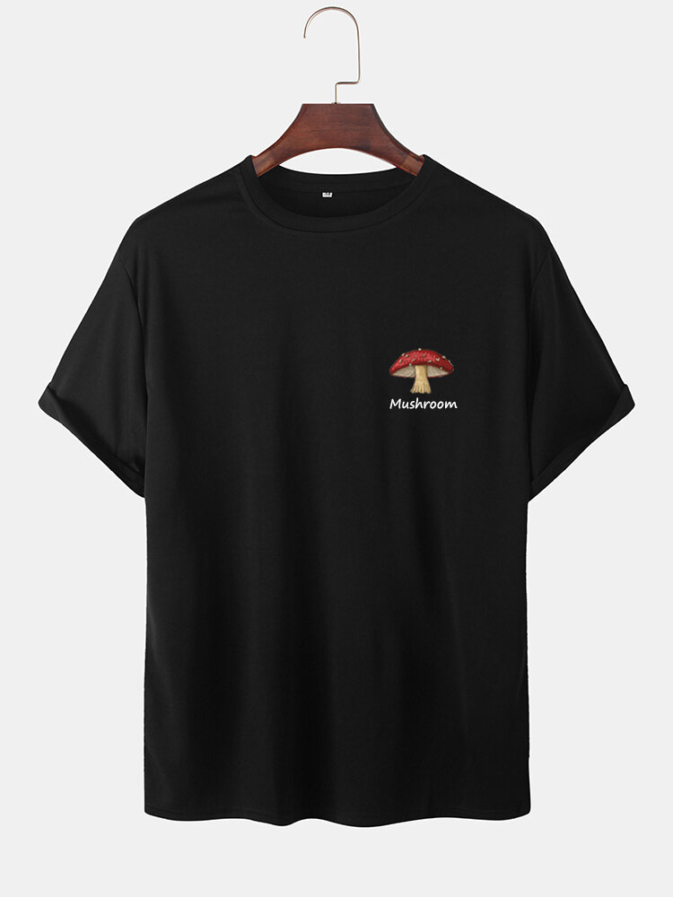 Mens Cartoon Mushroom Print Community Spirit Cotton Casual Short Sleeve T-Shirts – White S