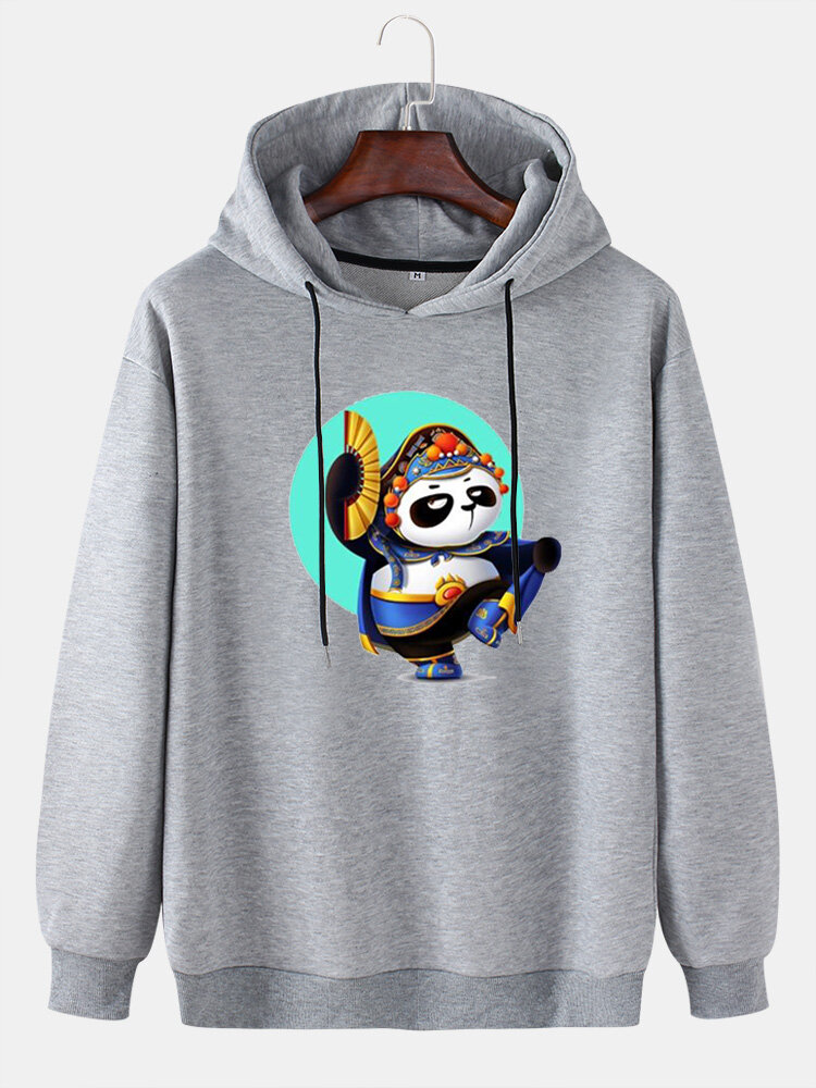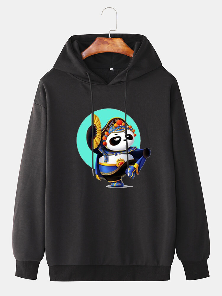 Mens Cartoon Panda Graphic Print Daily Loose Pullover Hoodie – Black 2XL