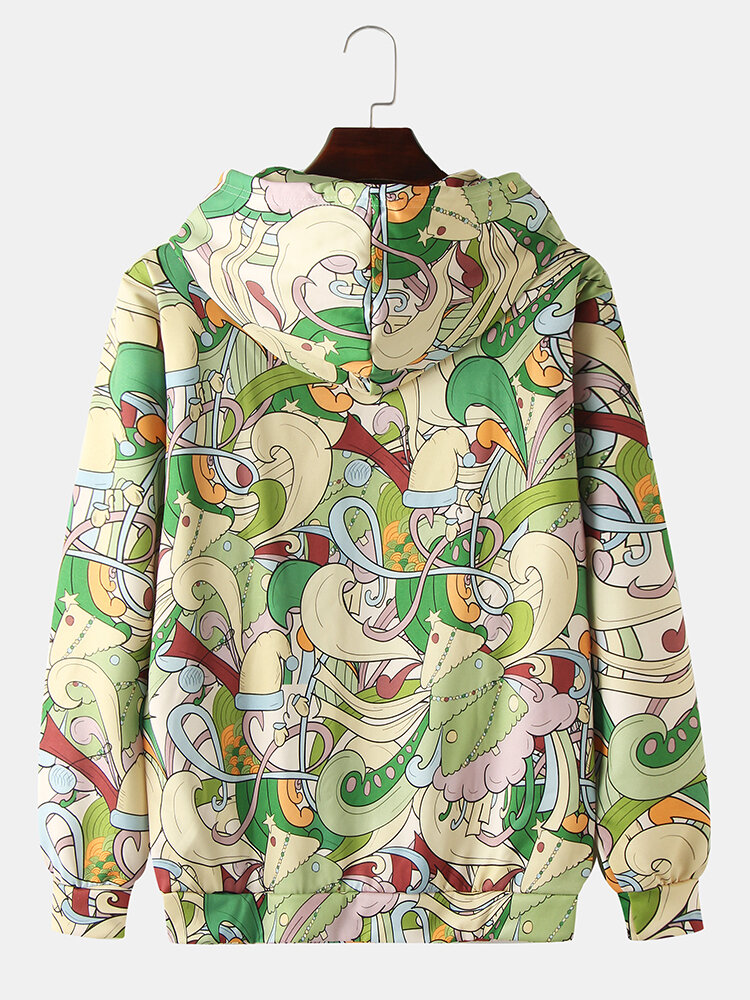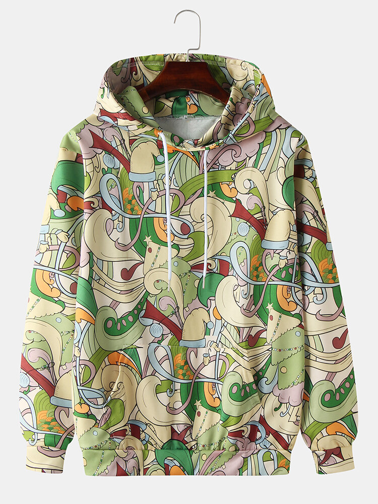Mens Cartoon Print Pouch Pocket Long Sleeve Hoodies – XL Green