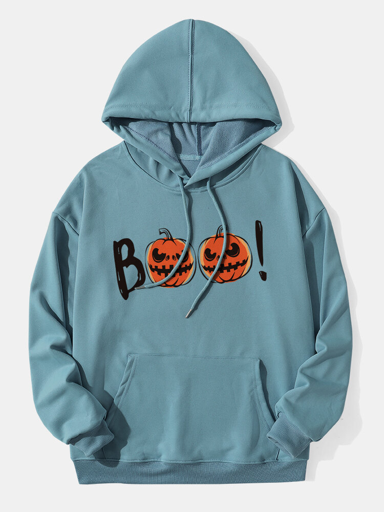 Mens Cartoon Pumpkin Hoodies With Kangaroo Pocket – White M