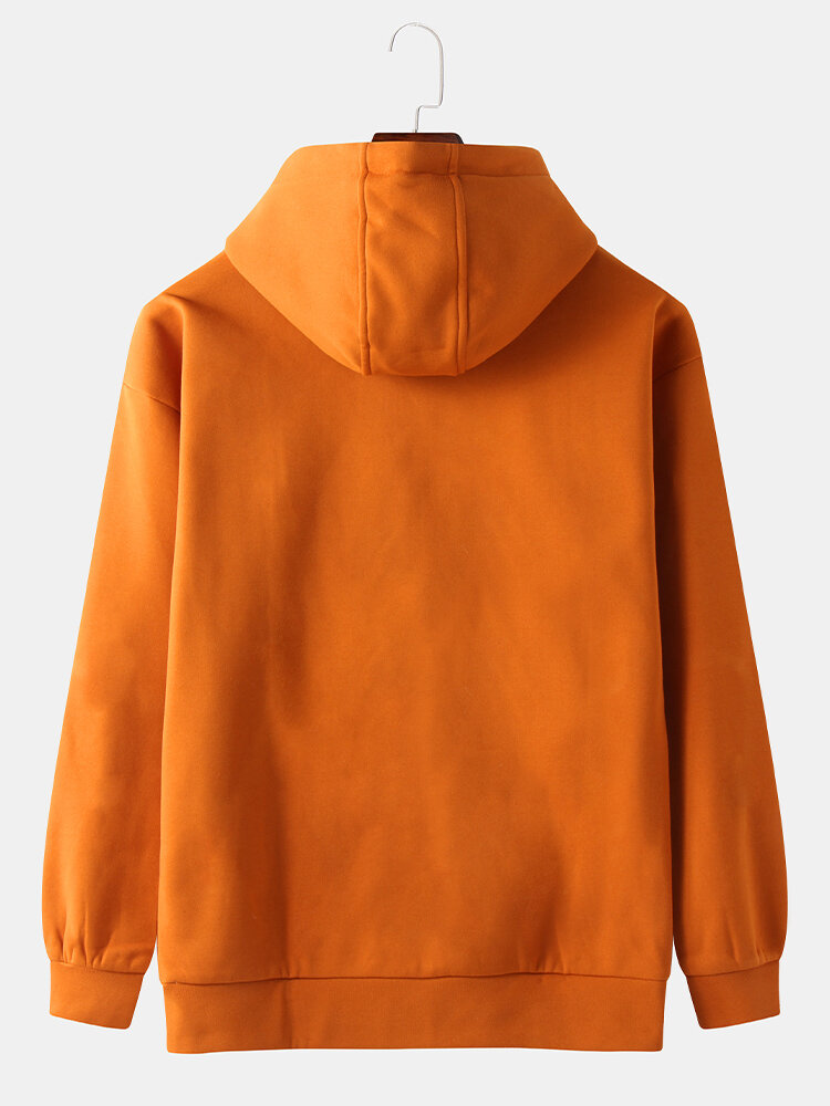 Mens Cartoon Pumpkin Scarecrow Print Kangaroo Pocket Long Sleeve Hoodies – Black 2XL